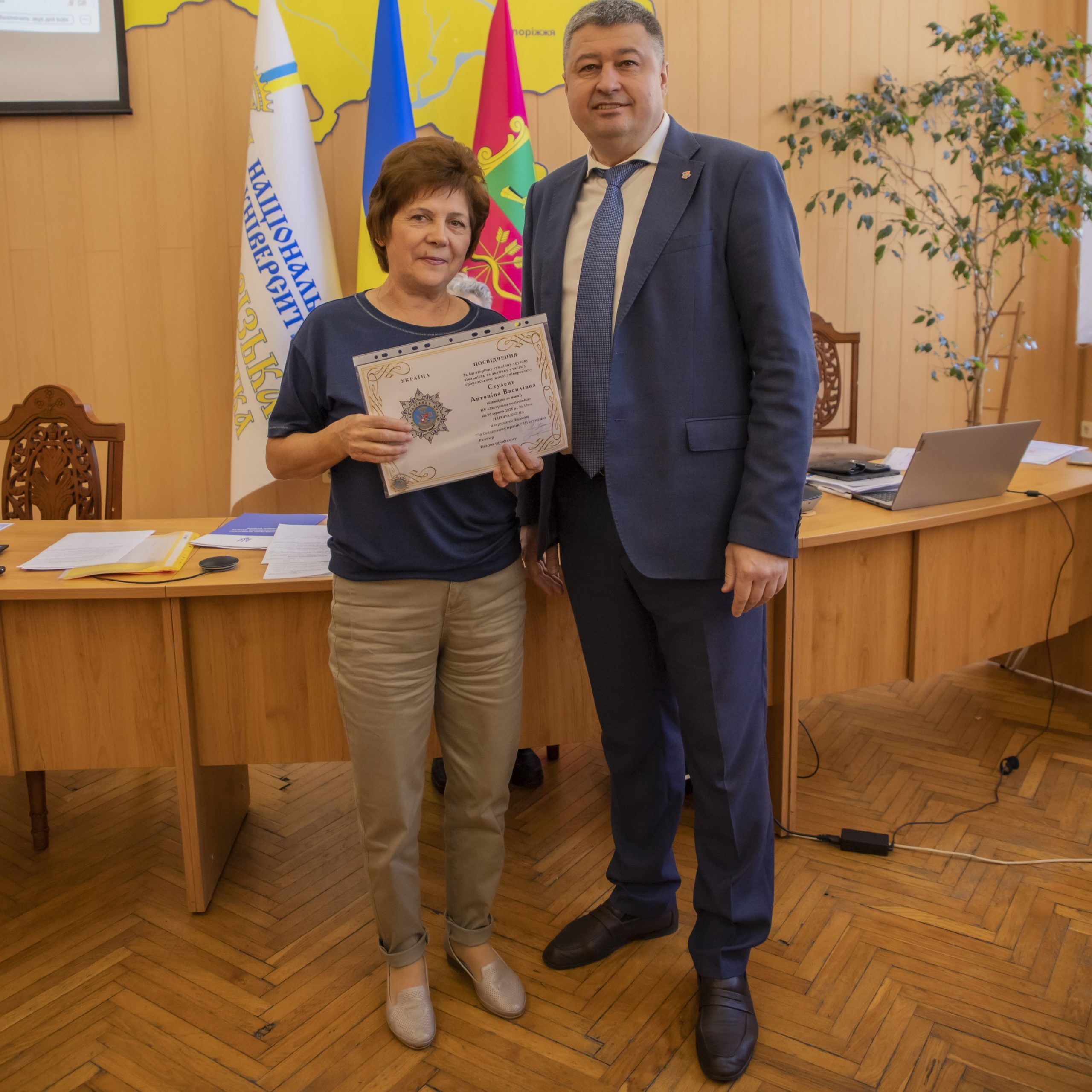 За багаторічну сумлінну трудову діяльність, особистий внесок у підготовку висококваліфікованих спеціалістів, активну позицію у громадському житті університету Грамотою ректора нагороджено доцента кафедри охорони праці і навколишнього середовища Сергія Силенка та старшу викладачку кафедри фізичної терапії та ерготерапії Аллу Ковальову.