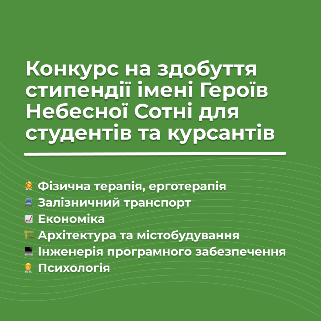 Розпочато відбір кандидатів на здобуття академічних стипендій імені Героїв Небесної Сотні у 2025/2026 навчальному році