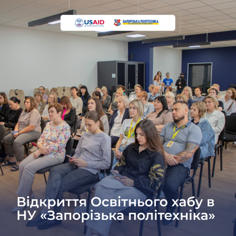 Cтворення освітнього хабу для переміщених вчителів у Національному університеті «Запорізька політехніка» стало можливим за підтримки проєкту Агентства США з міжнародного розвитку USAID “Зміцнення громадської довіри (UCBI)” (USAIDUkraine, UkraineConfidenceBuildingInitiative).