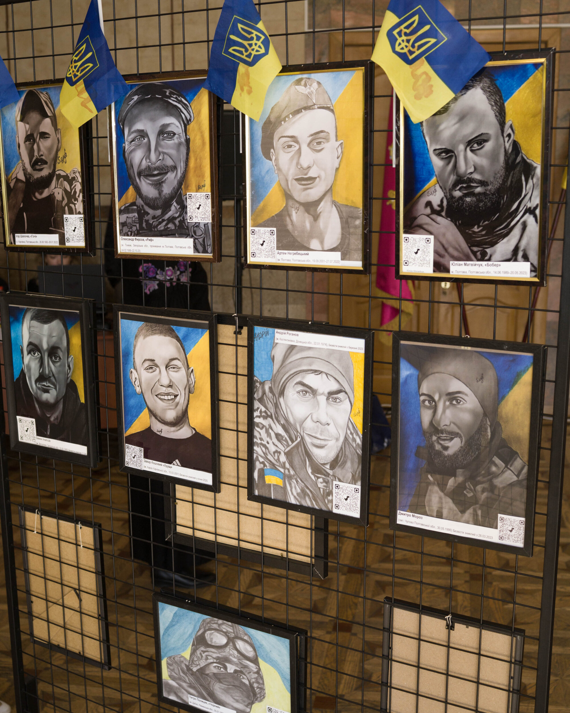 В експозиції представлено понад 100 портретів захисників і ветеранів — тих, хто боронив і продовжує боронити Україну, а також тих, хто, на жаль, загинув.