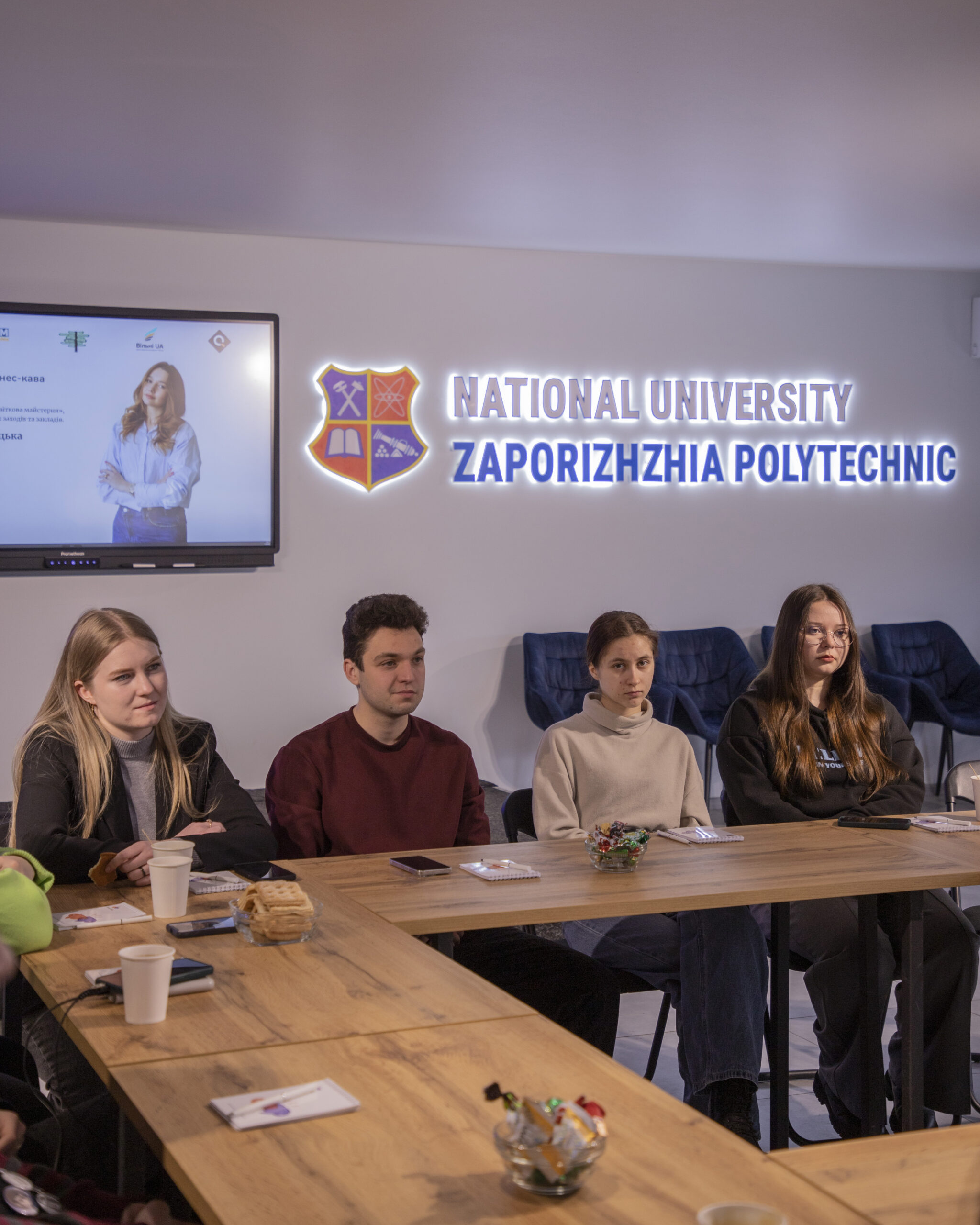 Проєкт «Бізнес-кава» реалізується за організації Центру сприяння працевлаштуванню студентів та випускників НУ «Запорізька політехніка», Центру підтримки громадських ініціатив «Вільні UA» та за сприяння ГО «КВЕРТІ КОМ’ЮНІТІ» і громадської спілки «Запорізький кластер «Інжиніринг — Автоматизація — Машинобудування».