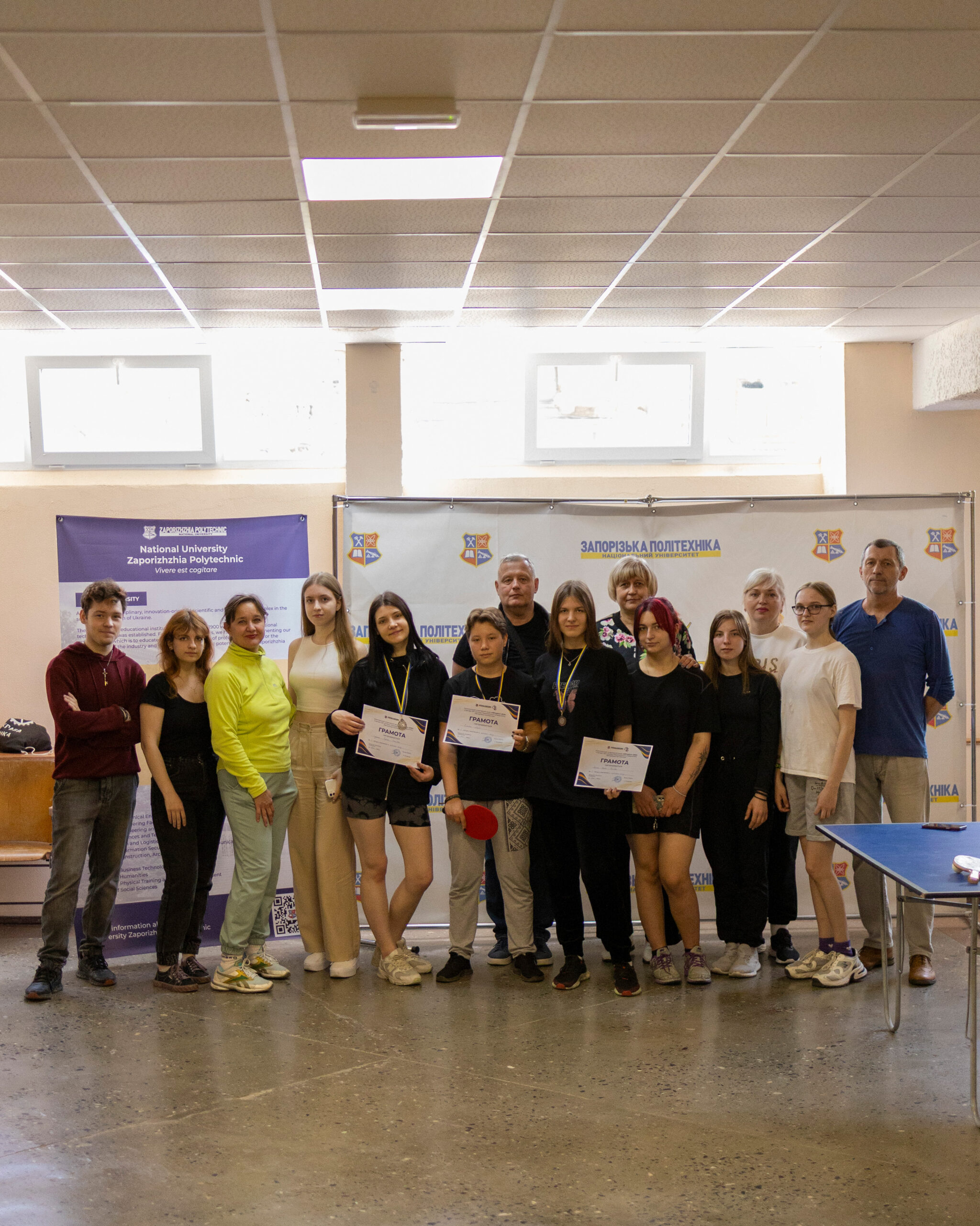 On April 26, the final competitions within the framework of the comprehensive sports event “Entrant-2025” were held at the sports complex of the Zaporizhia Polytechnic National University. This time, more than 25 participants from various educational institutions of our city and region competed for victory in table tennis.