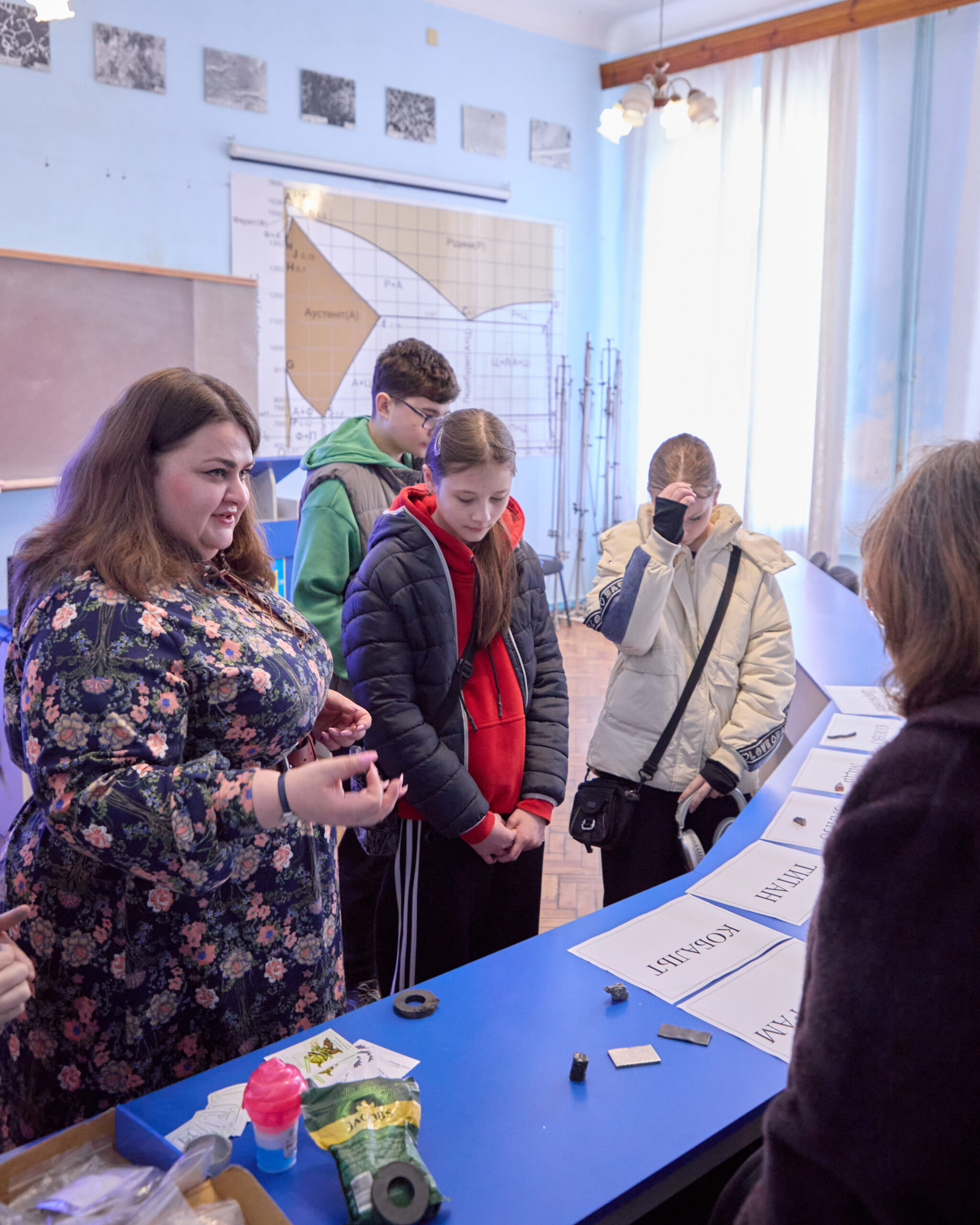 During the practical part, the participants investigated the properties of metals, studied their applications in various fields, experimented with magnets, and even played the “Guess the Metal” quiz.