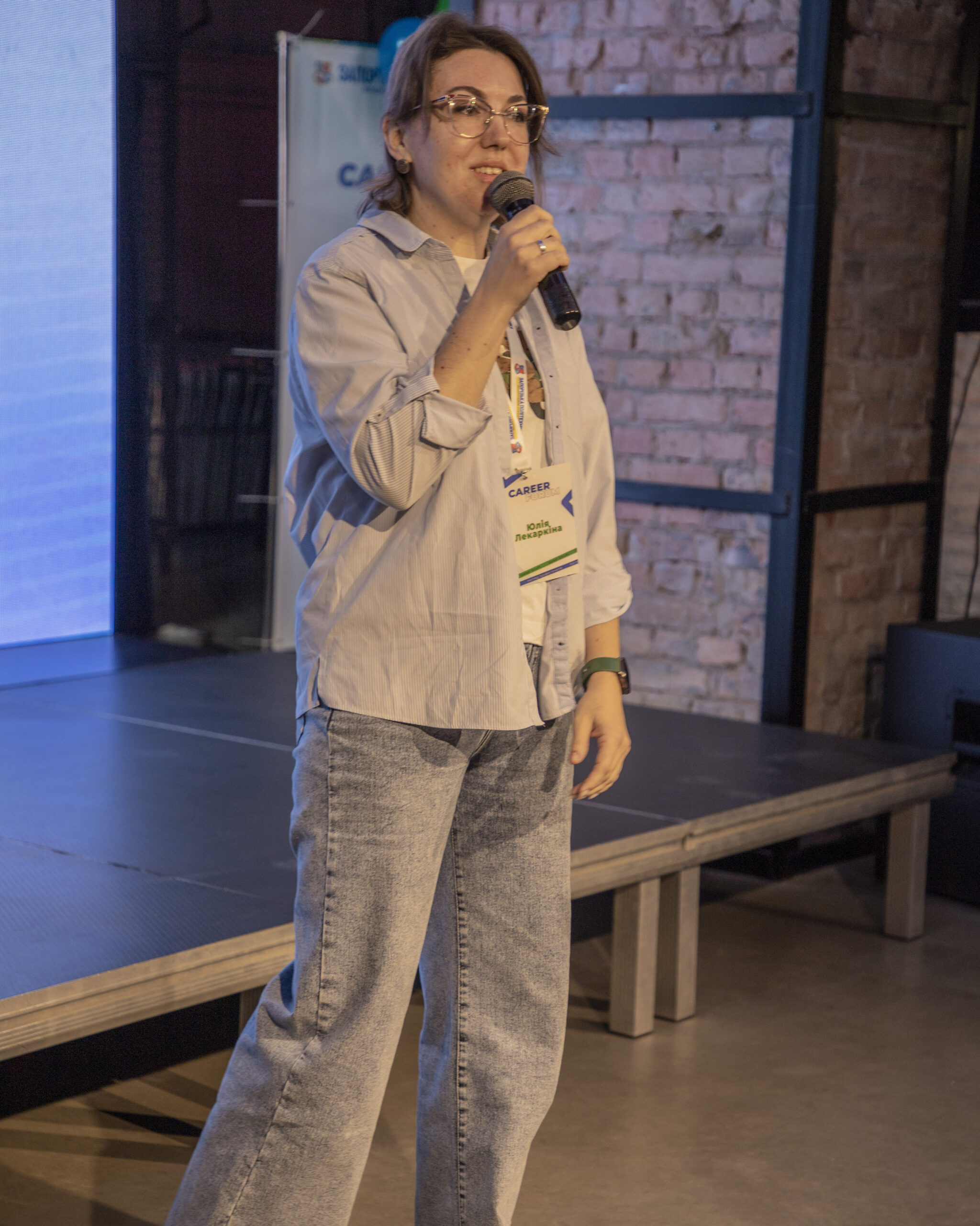 The speakers of the event are real practitioners who are not afraid of challenges and implement the most daring ideas every day, develop and do not stop. Director of the Zaporizhzhia City Development Institute Viktoria Agentaeva, founder of the gastronomic brand Allo, Salmon Angelina Teslenko, owner of the Airflow coffee shop and pastry shop Yulia Lekarkina, head of the Noosphere Engineering School laboratory, private entrepreneur Oleksiy Shevchenko — told their unique stories that inspired action. Young people can also surprise! The guests asked such questions that often turned into lively discussions: about strategies in times of uncertainty, responsibility for the team, the power of intuition and the role of higher education in life, and most of all — technical & humanitarian!