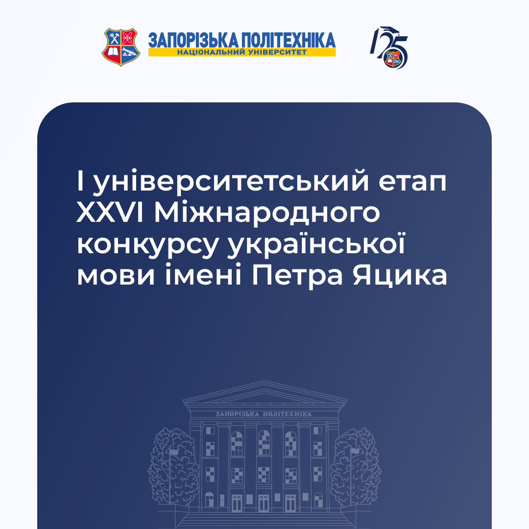 We invite you to take part in the 1st university stage of the 26th International Ukrainian Language Competition named after Petro Jacyk, dedicated to the 125th anniversary of the Zaporizhia Polytechnic National University!