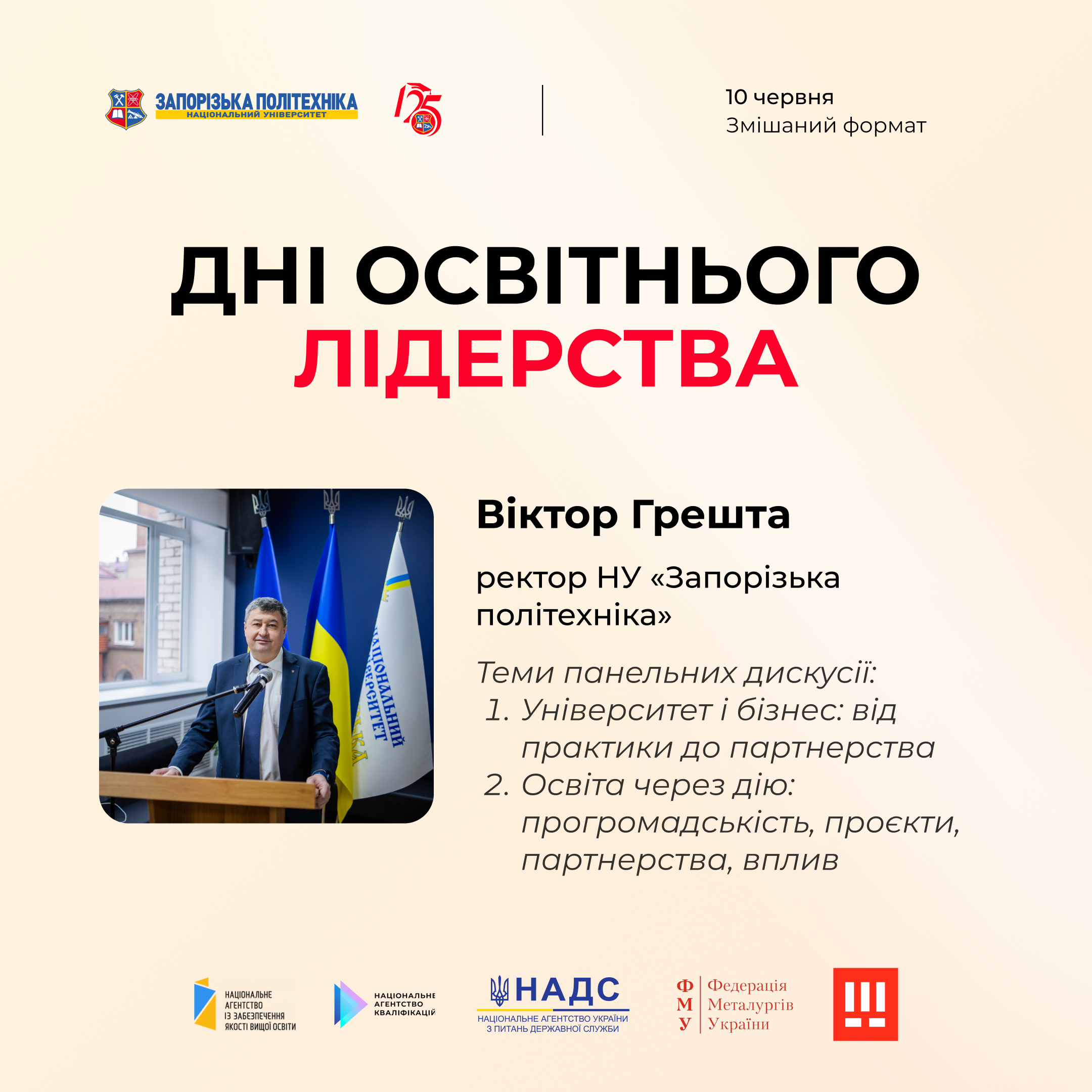 Zaporizhia Polytechnic National University invites you to the All-Ukrainian Forum "Days of Educational Leadership"