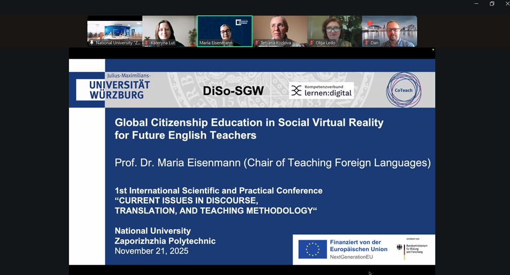On November 21, the Department of Foreign Philology and Translation hosted the 1st International Scientific and Practical Conference “Current Problems of Discourse Studies, Translation Studies and Teaching Methods” dedicated to the 125th anniversary of the Zaporizhia Polytechnic National University.