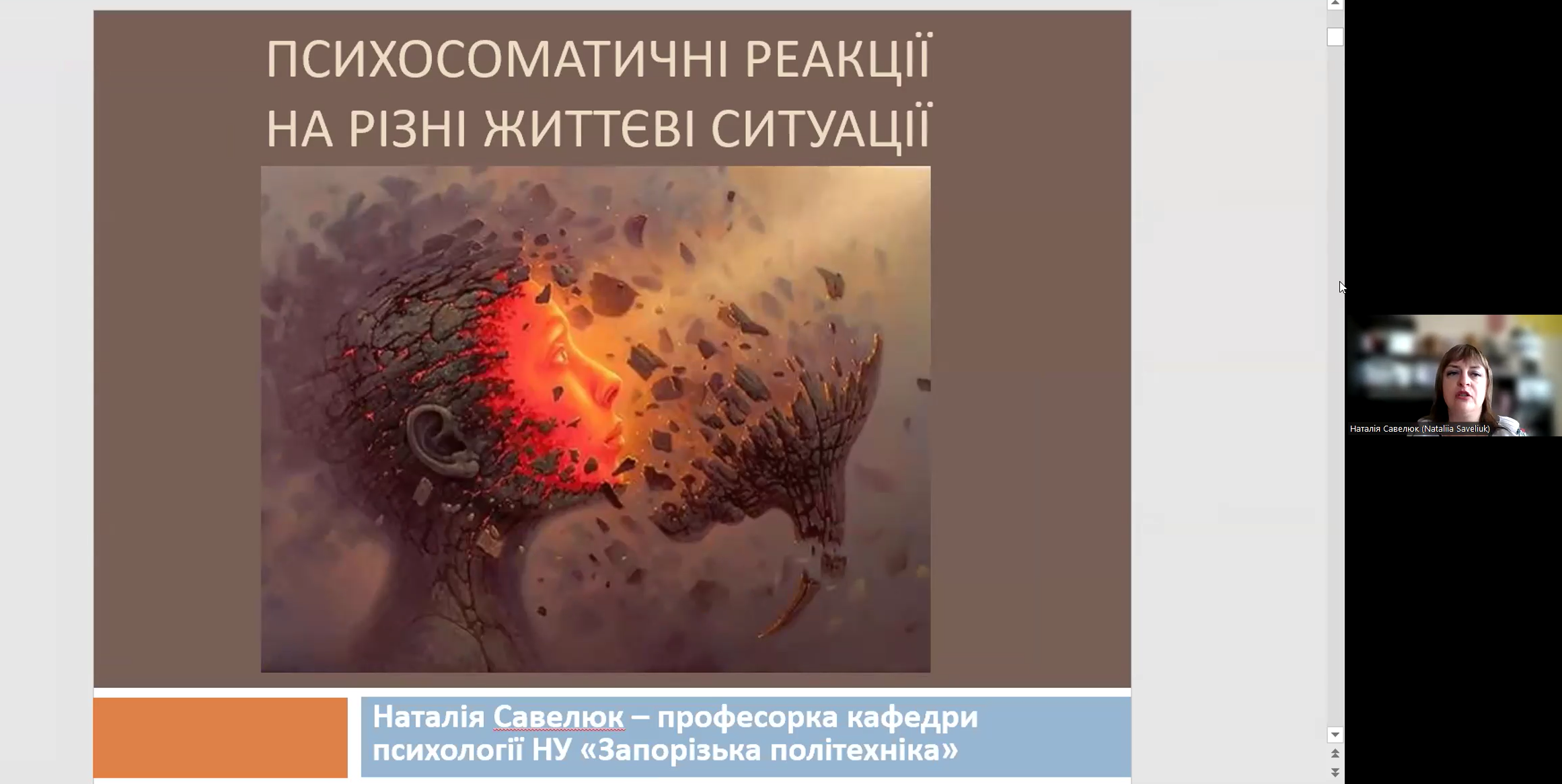 ?Professor of the department Nataliya Savelyuk held an interesting master class on the topic “Psychosomatic reactions to various life situations”, during which participants had the opportunity to explore their psychosomatic reactions using psychodiagnostic methods and art therapy techniques