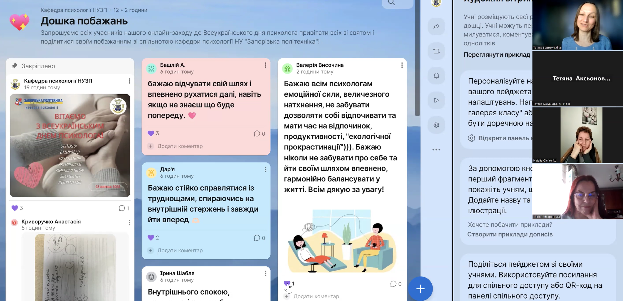 April 23 is the All-Ukrainian Psychologist’s Day, and this year the Department of Psychology of the Zaporizhia Polytechnic National University supported its long-standing tradition – spending this day in the circle of the professional community of teachers, undergraduate and graduate students, graduates, partners, and fellow psychologists. On the occasion of the holiday, an online event was held with a rich and interesting program of master classes, mini-lectures, and workshops. More than 70 participants joined the event.