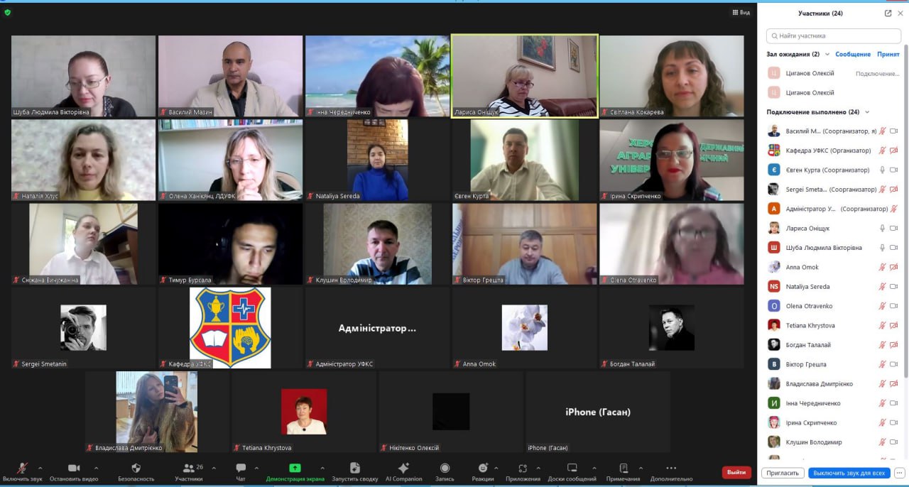 We are grateful for the participation in the Olympiad to our colleagues: the Academy of Recreational Technologies and Law, Lutsk Pedagogical College of the Volyn Regional Council, Khortyts’ka National Educational and Rehabilitation Academy of the Zaporizhzhia Regional Council, Ivan Bobersky Lviv State University of Physical Culture, Yuriy Kondratyuk Poltava Polytechnic National University, Kherson State Agrarian and Economic University, State Trade and Economic University, Taras Shevchenko Luhansk National University, Bohdan Khmelnytskyi Melitopol State Pedagogical University, Stepan Demyanchuk International University of Economics and Humanities, National University of Bioresources and Environmental Management of Ukraine, Kharkiv State Academy of Physical Culture, Kharkiv National Pedagogical University named after Hryhoriy Skovoroda.