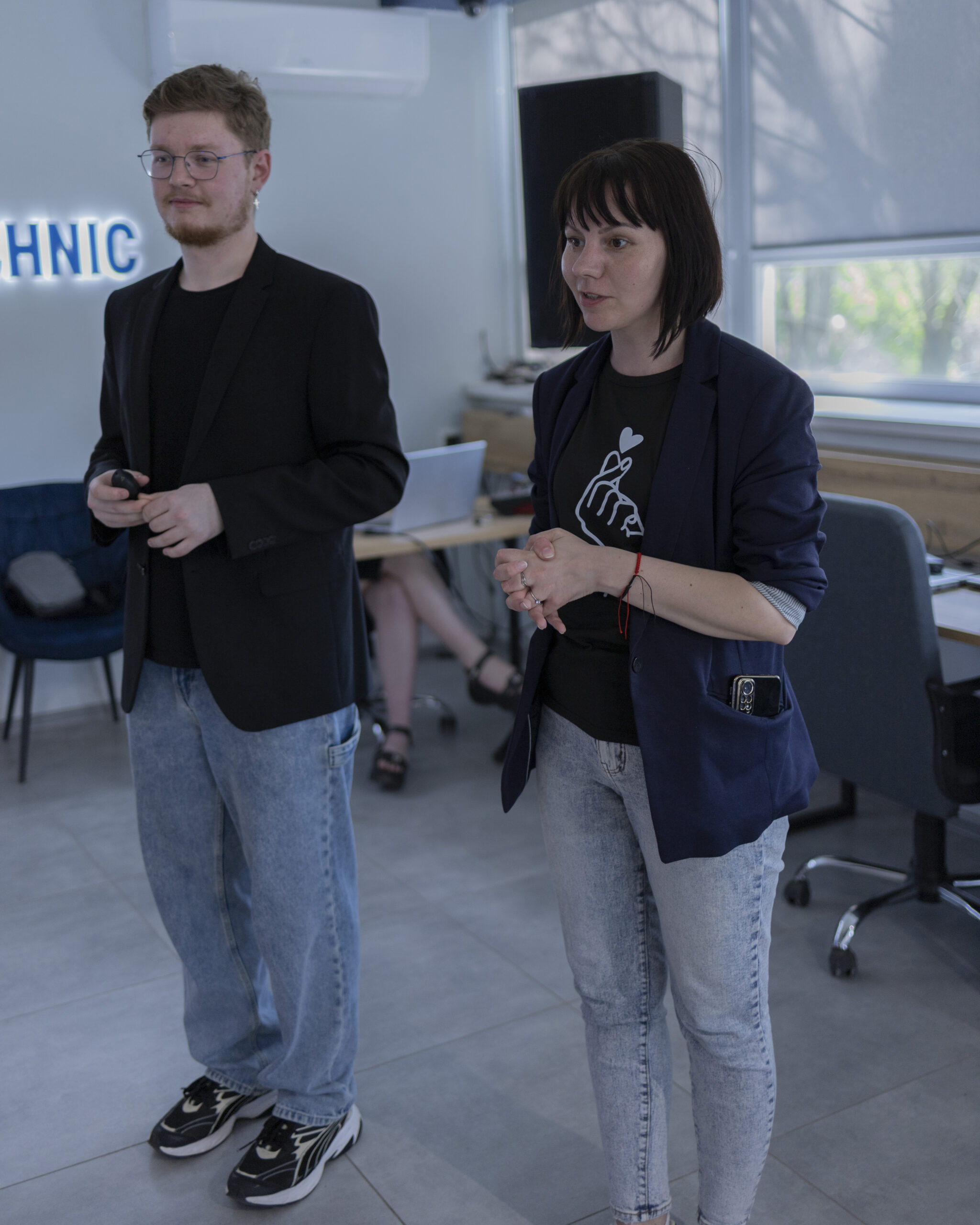 The speakers of the event — student specialist Kyrylo Medvedev and human resources manager Olga Chumak — presented the company: