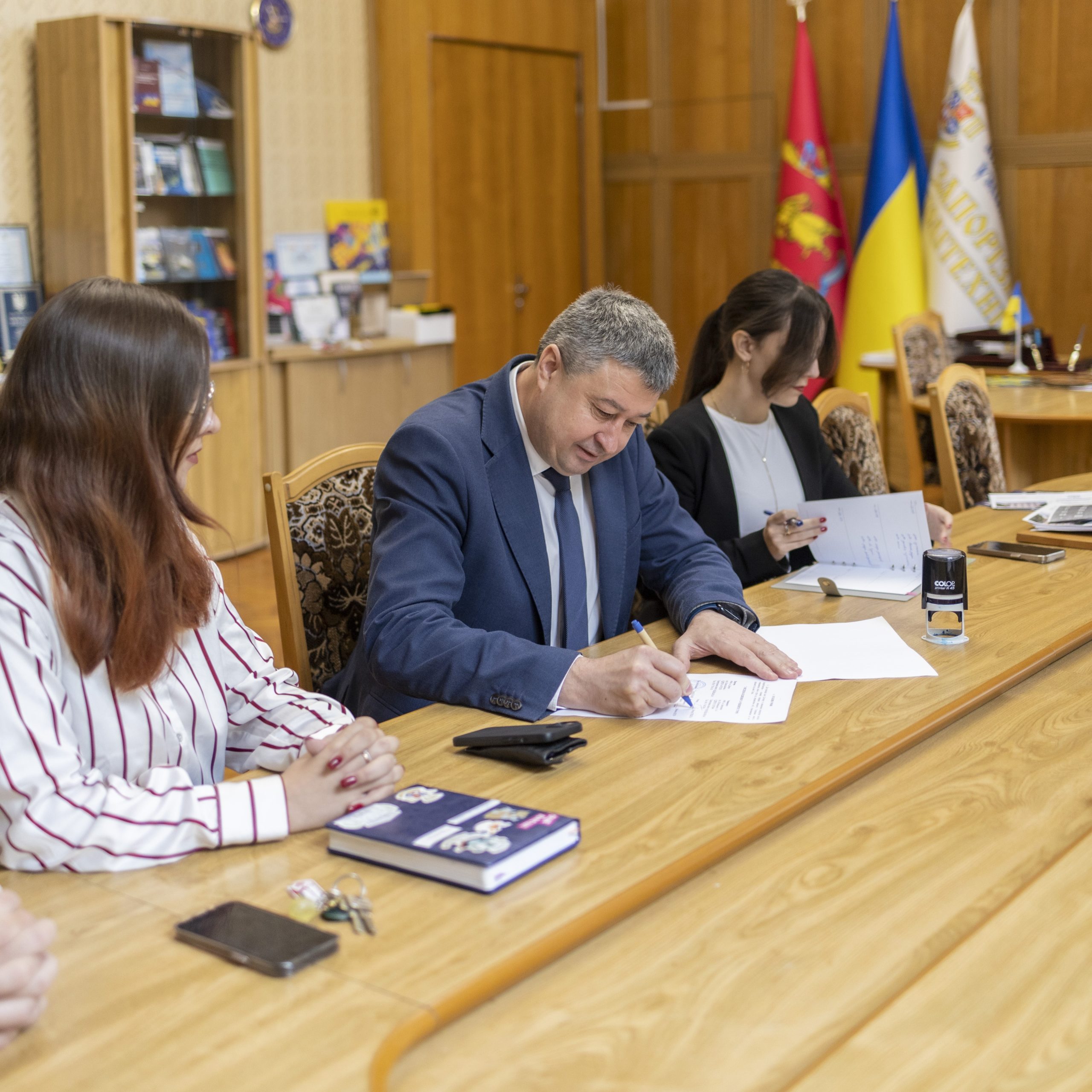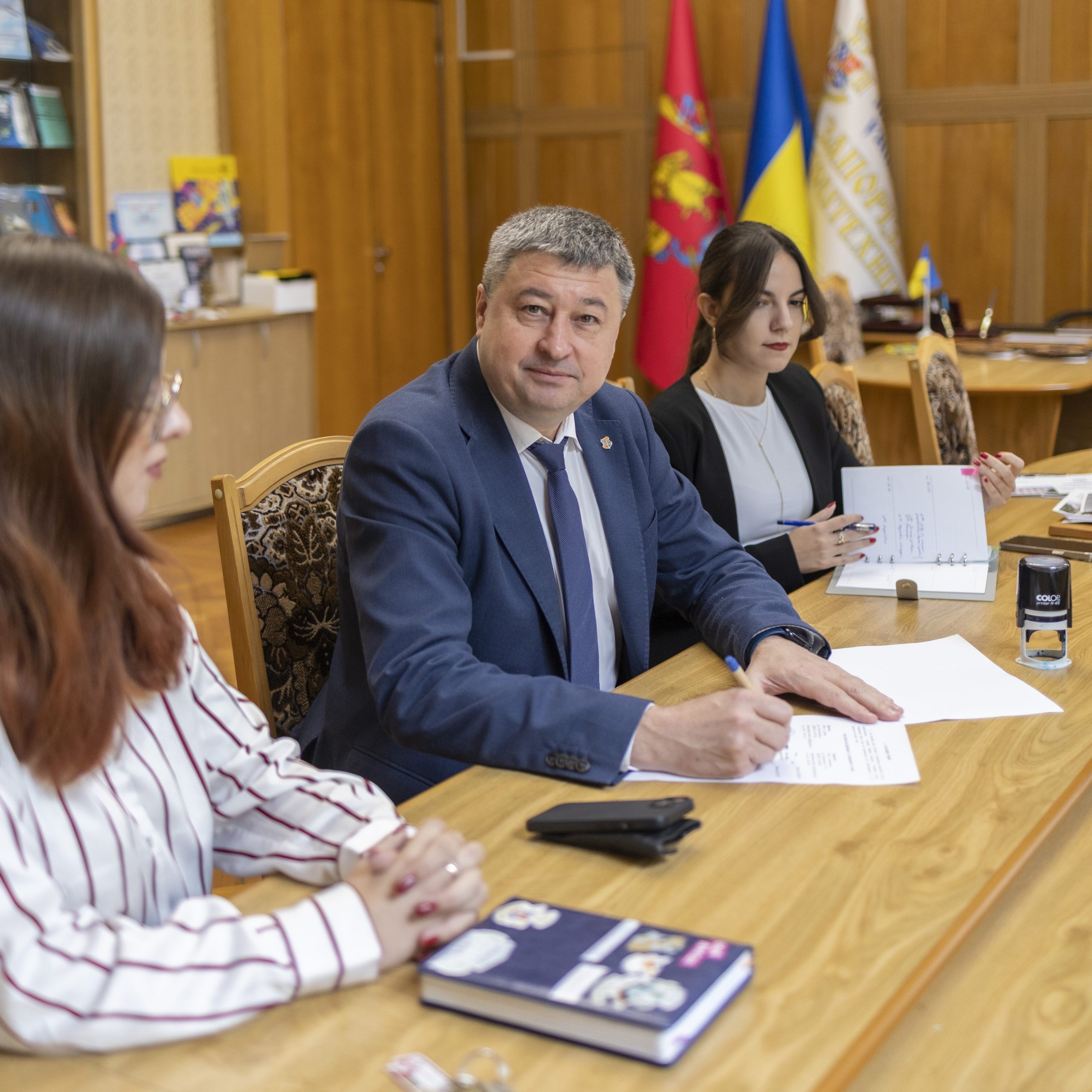 On September 30, the rector of Zaporizhia Polytechnic National University Viktor Greshta signed a memorandum of cooperation with the South-Eastern Interregional Department of the State Labor Service. The department was represented by the head of the inspection department in the Zaporizhia region of the South-Eastern Interregional Department of the State Labor Service, Andriy Adamchuk, and the head of the department for ensuring the activities of the inspection department in the Zaporizhia region of the South-Eastern Interregional Department of the State Labor Service, Oleksandra Novoselova.