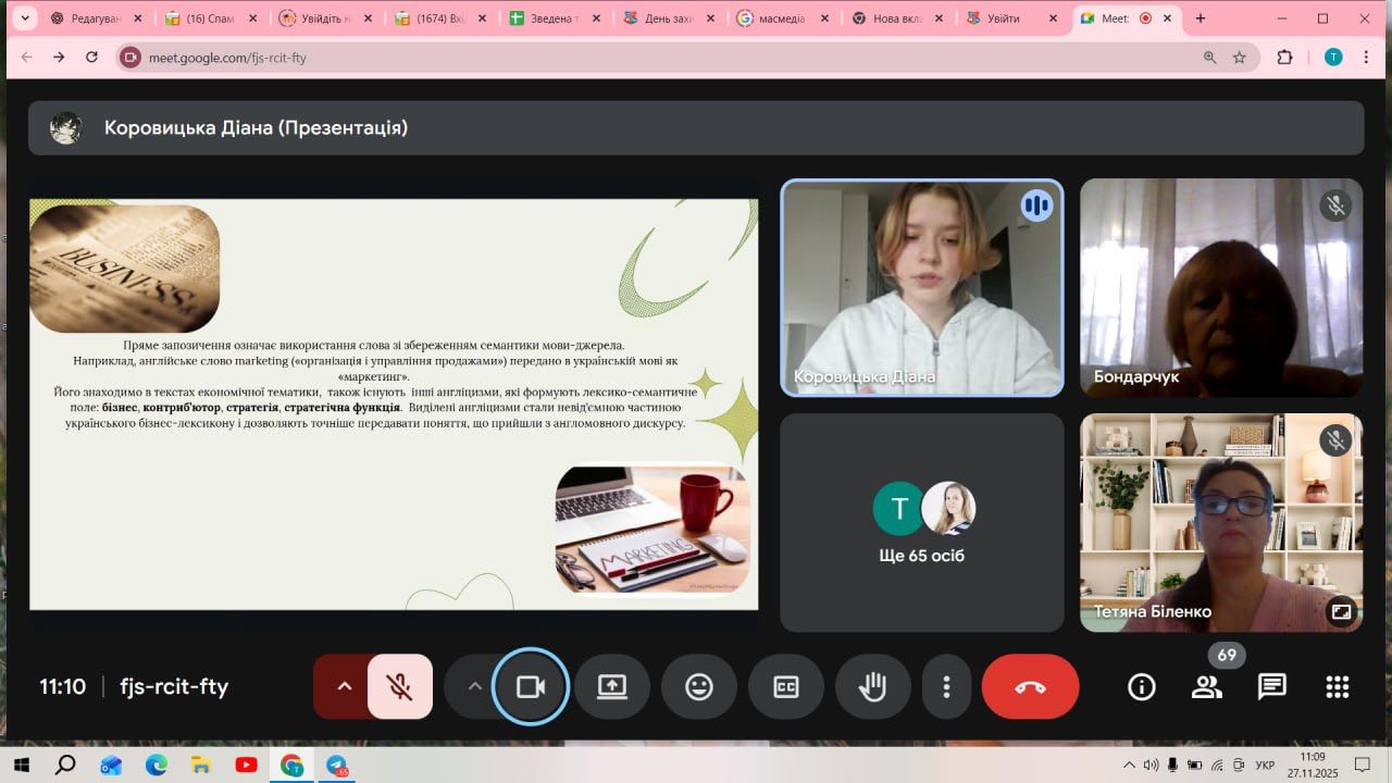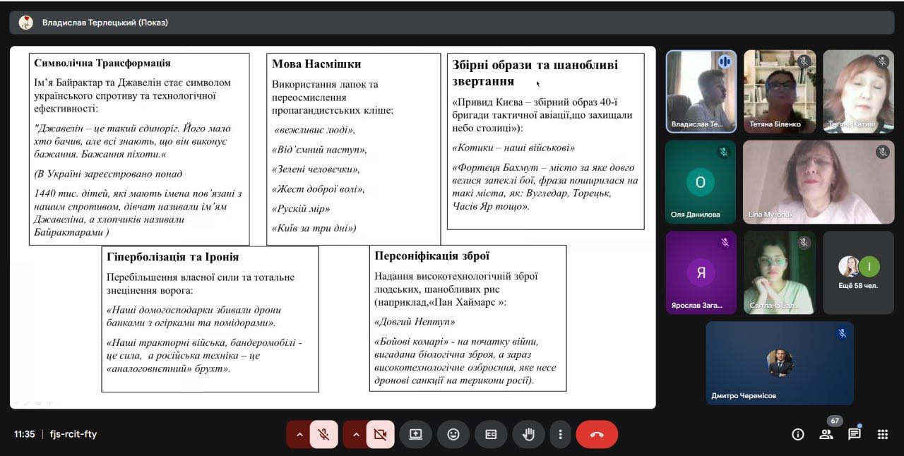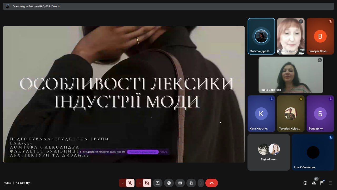 The student reports were vivid, profound, extremely relevant, and demonstrated a wide range of scientific interests of modern philology students and representatives of technical specialties. Each presentation was accompanied by a multimedia presentation, and the discussion after the reports was accompanied by lively discussions and interesting questions.