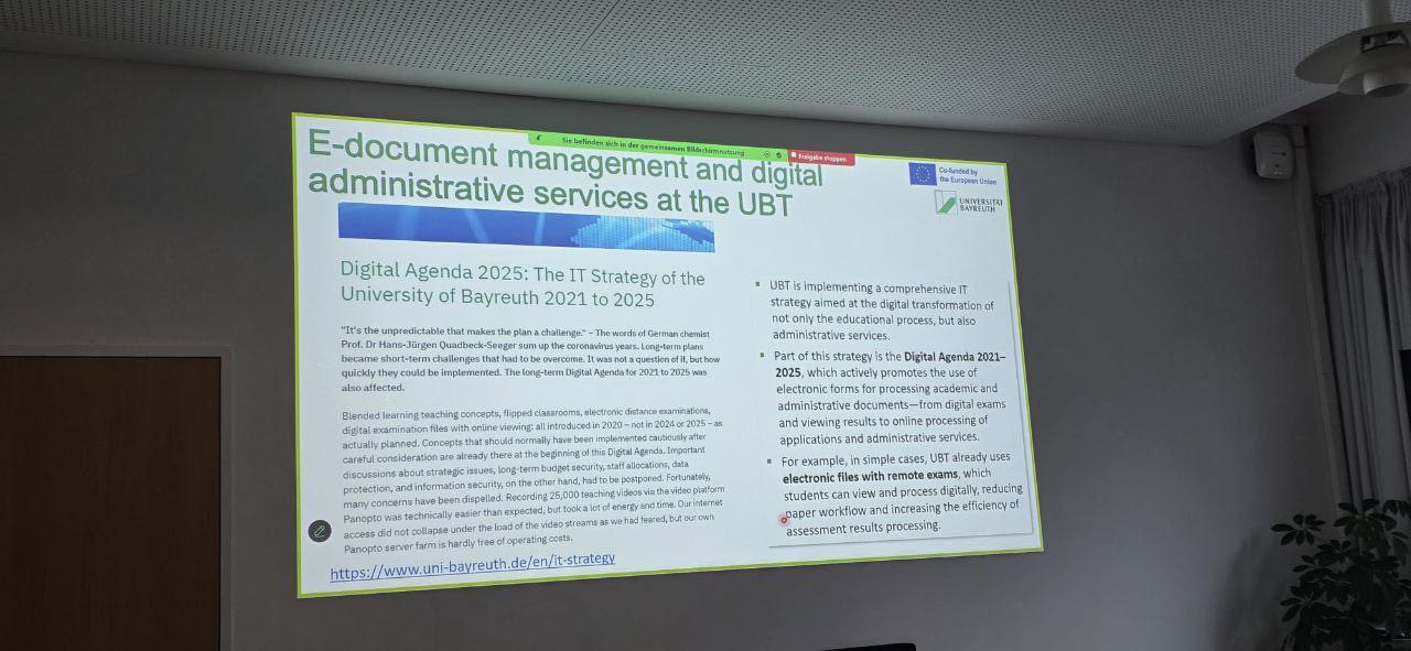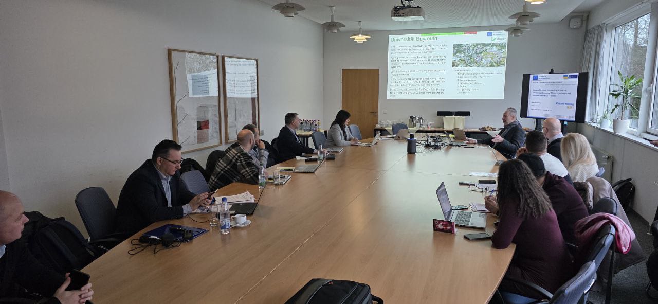 The meeting was held at the University of Bayreuth (Germany) with the participation of partners from Ukraine and the Member States of the European Union. The event program was rich and included intensive work in working and discussion formats, which made it possible to study in detail the project concept, its goals, the structure of work packages and expected results, as well as to agree on common approaches to implementing the planned solutions into the internal management and educational processes of partner universities.