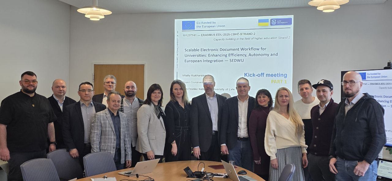 In December 2025, representatives of the National University “Zaporizhzhya Polytechnic” joined the Kick-off meeting of the international Erasmus+ CBHE project “Scalable Electronic Document Workflow for Universities: Enhancing Efficiency, Autonomy and European Integration (SEDWU)” 101237141 — SEDWU — ERASMUSEDU-2025-CBHE, which is implemented with the support of the European Union. The project is aimed at creating and implementing a modern scalable model of electronic document workflow for universities, which will ensure increased management efficiency, transparency of administrative procedures and strengthening the institutional autonomy of higher education institutions.