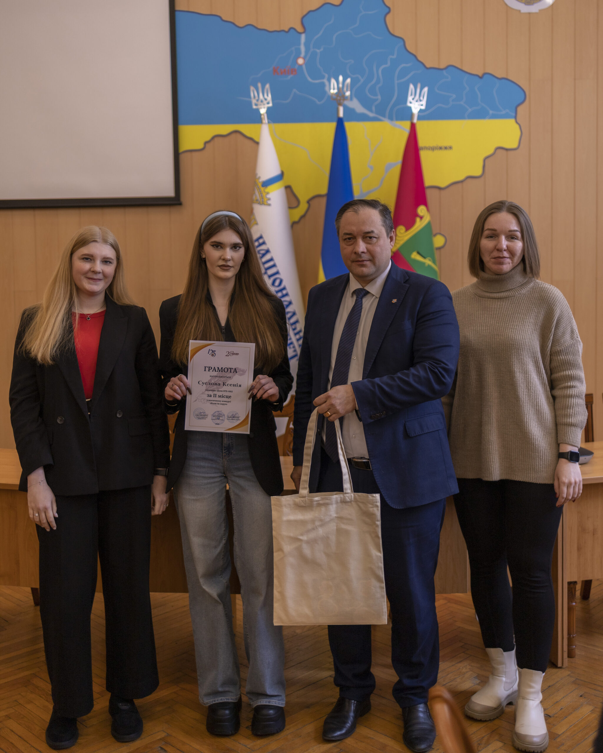 Pro-rector Andriy Ivanchenko, head of the student union Maryna Zinchenko, and head of the student government Sofia Stepanenko congratulated and awarded our creative youth with pleasant gifts.