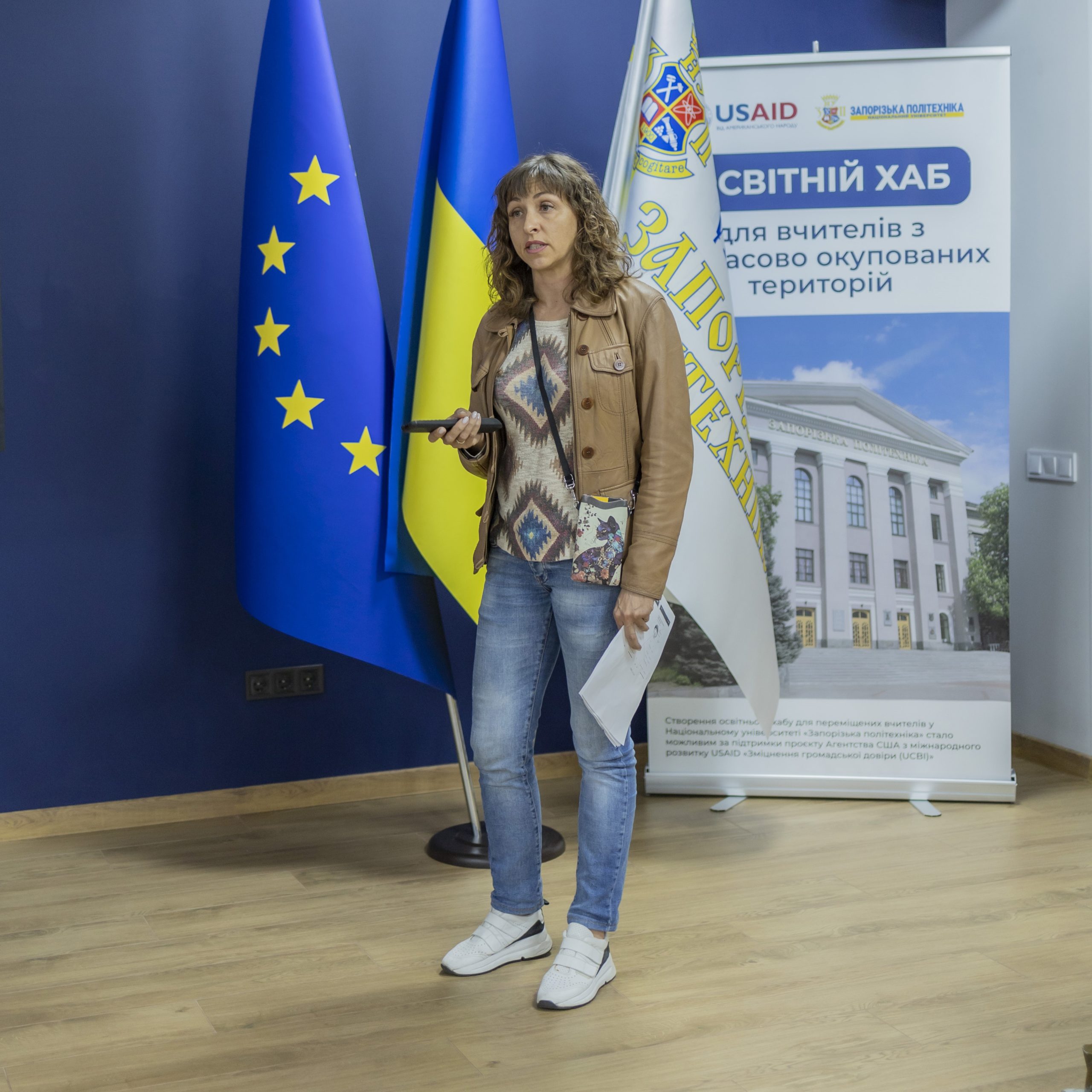 The participants of the “Polytech Welcome Tour” were greeted by the Vice-Rector for Scientific and Pedagogical Work, Socio-Economic Development and Youth Policy Andriy Ivanchenko, Director of the Children’s and Youth Scientific University Olena Nazarova, Director of the Zaporizhia Regional Center for Polytechnic Education Tetyana Solovyova, and Deputy Head of the ZMR District Administration for Oleksandrivskyi District Nataliya Bukhtiyarova.