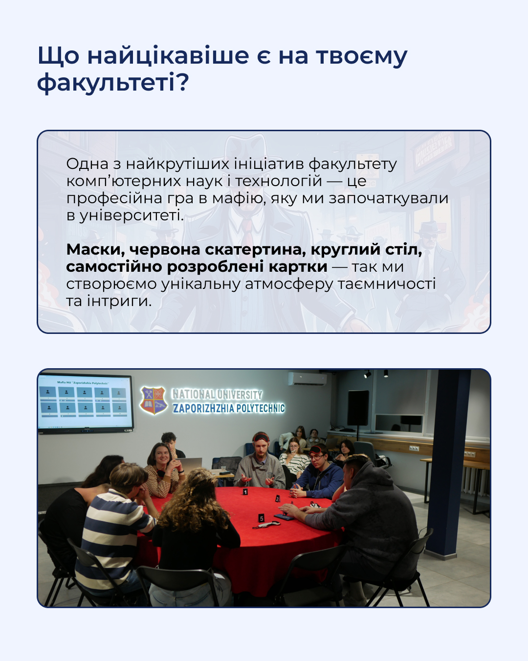 The student government of the Faculty of Computer Science and Technology organizes themed parties, holds movie nights, and Mafia games have become a real calling card of the faculty!