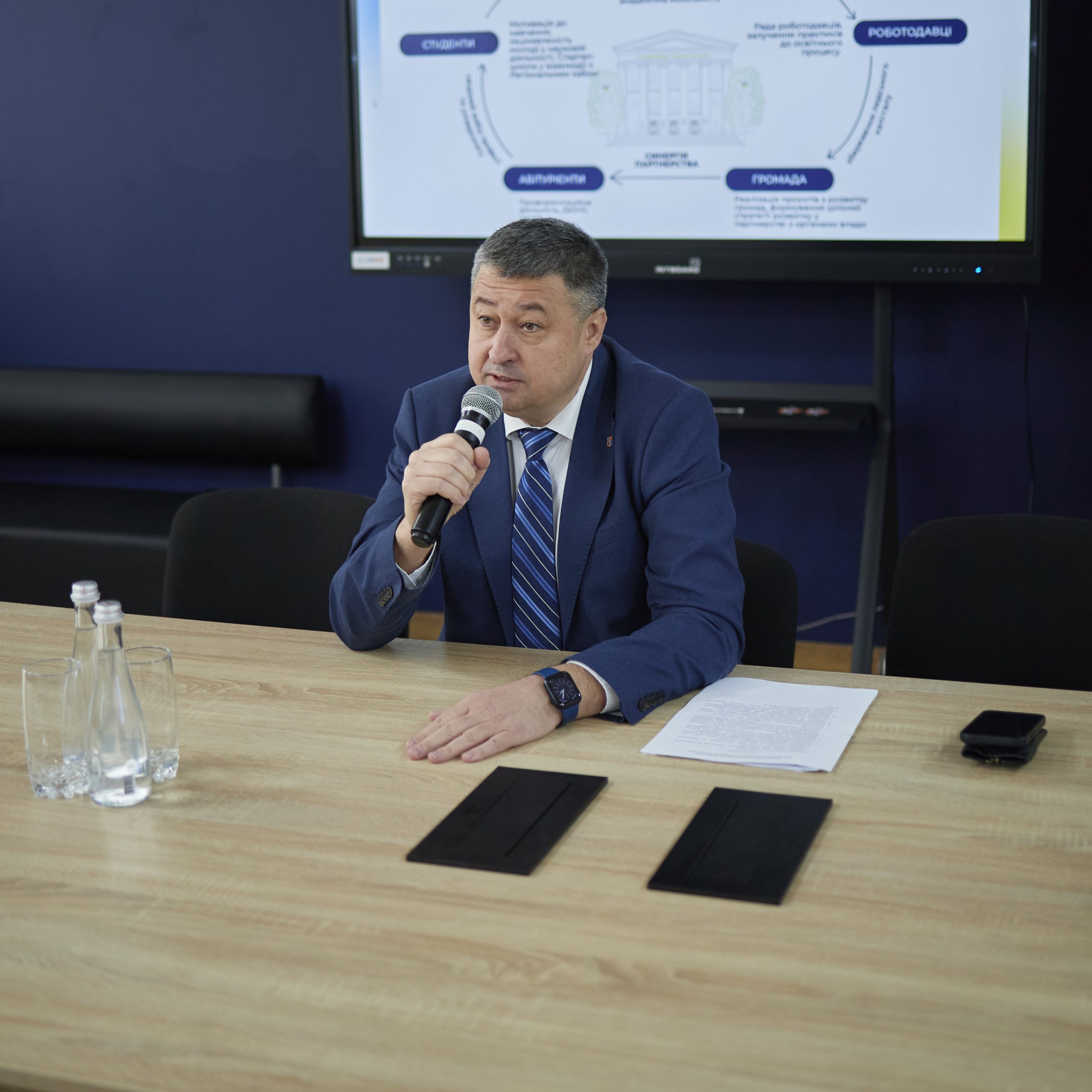The meeting was opened by the rector of the Zaporizhia Polytechnic National University, Viktor Greshta. Our goal is to unite the efforts of the university, business and employers into a powerful partnership. We strive for cooperation to become an effective platform for real change, capable of quickly responding to market challenges, creating innovative solutions for business, supporting and implementing new trends in higher education, and contributing to the formation of a competitive graduate.