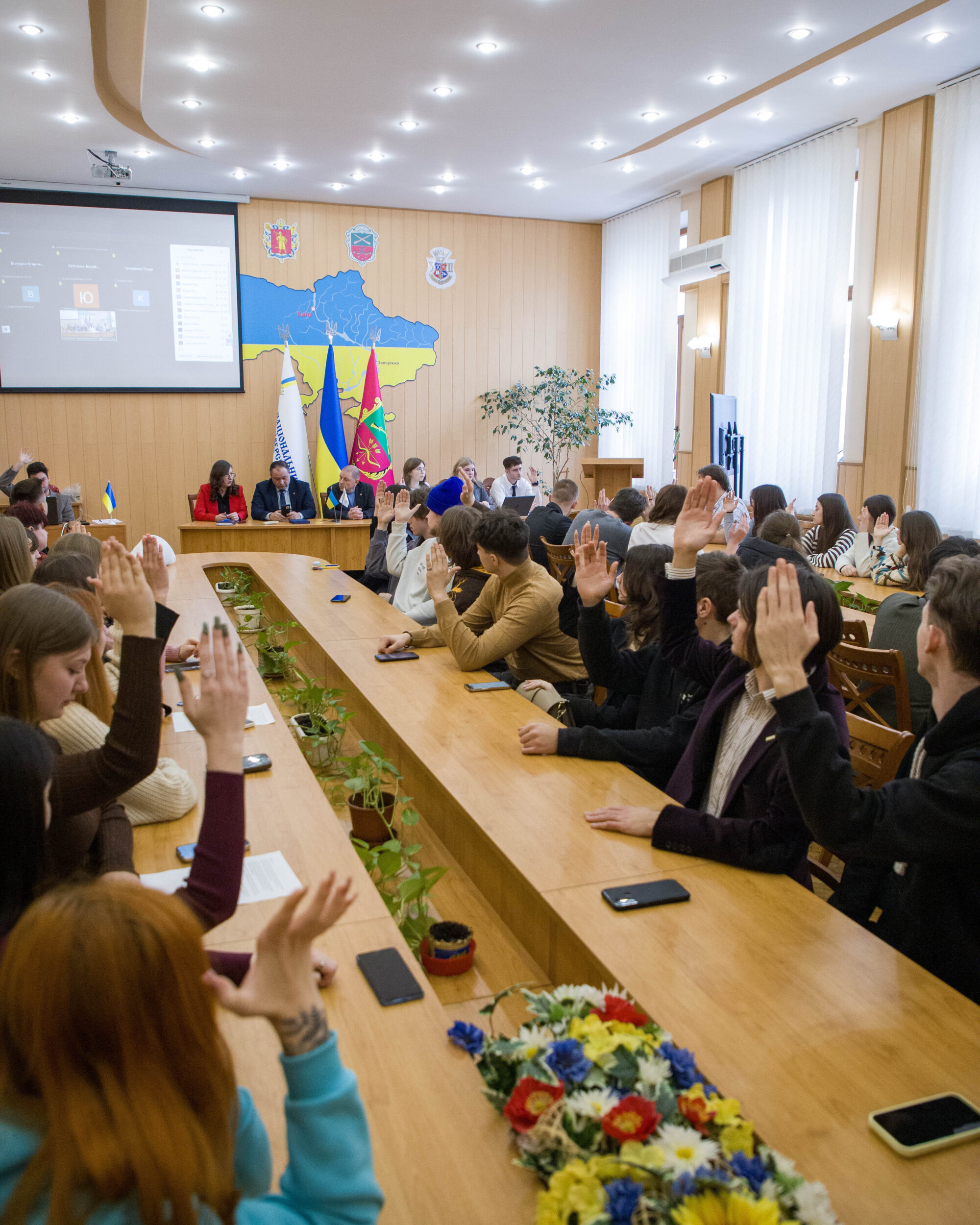 Rector Viktor Greshta, First Vice-Rector Serhiy Shylo, Vice-Rector Andriy Ivanchenko and Acting Svitlana Sadikova, the head of the student, graduate and doctoral student trade union, joined the meeting and congratulated the self-government team on their successes over the year.