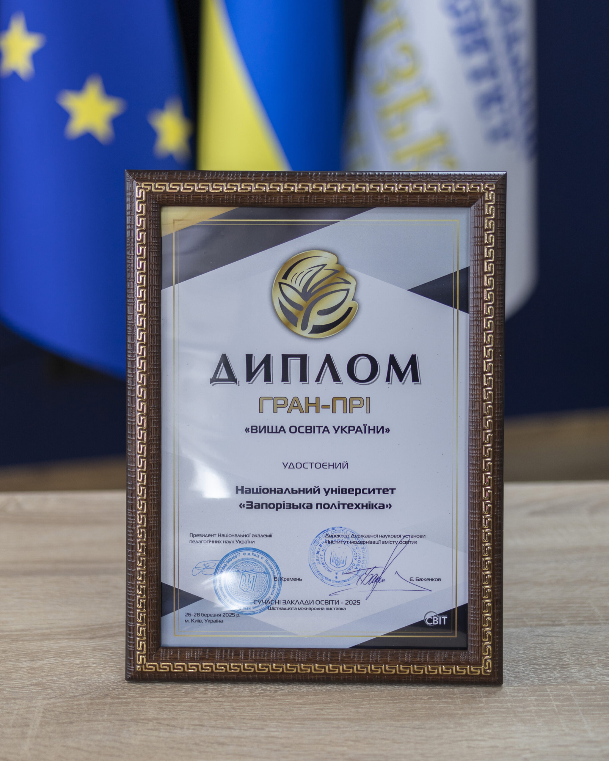 The National University “Zaporizhzhya Polytechnic” received the Grand Prix “Higher Education of Ukraine”. The university was awarded three gold medals for competitive works in thematic nominations.