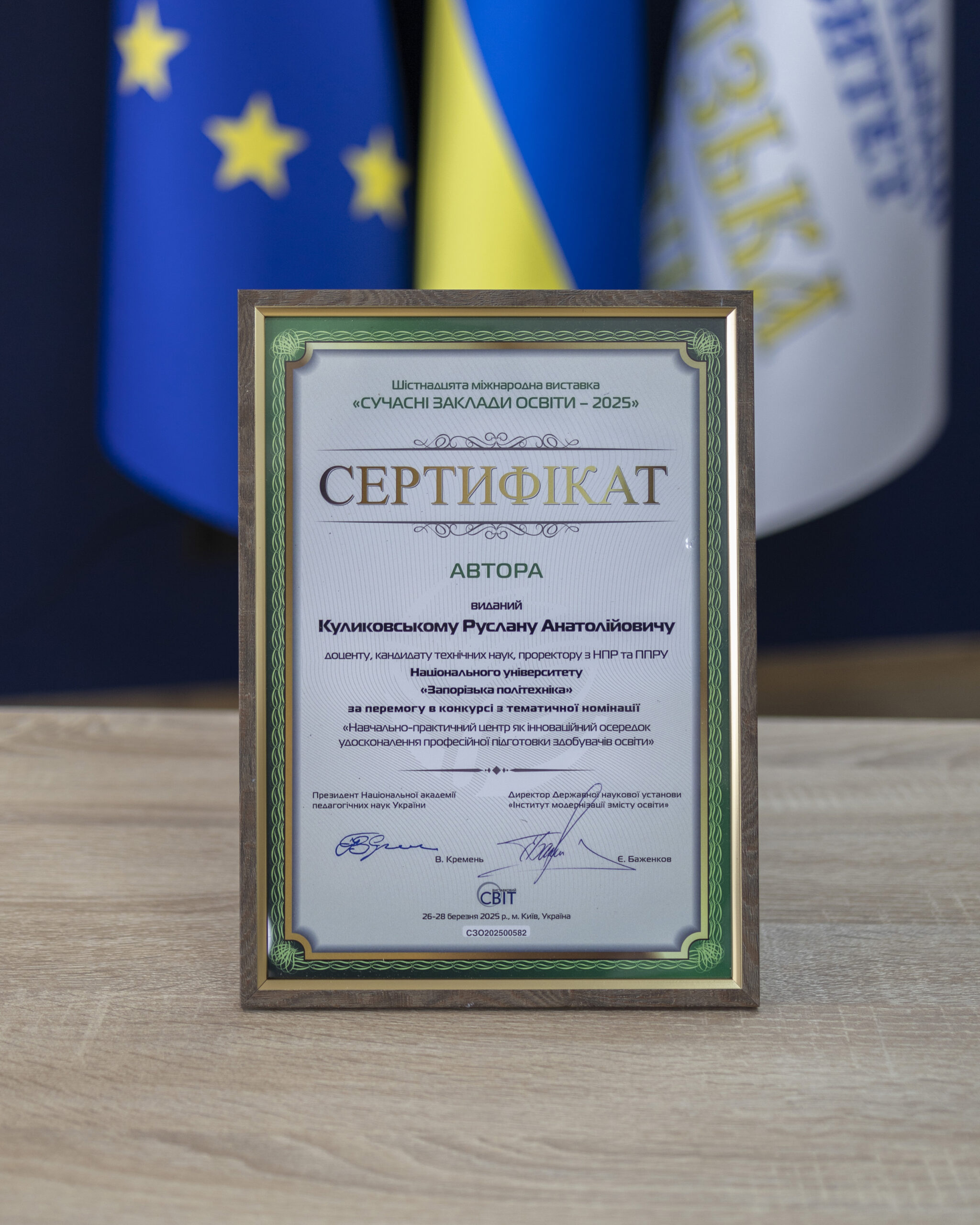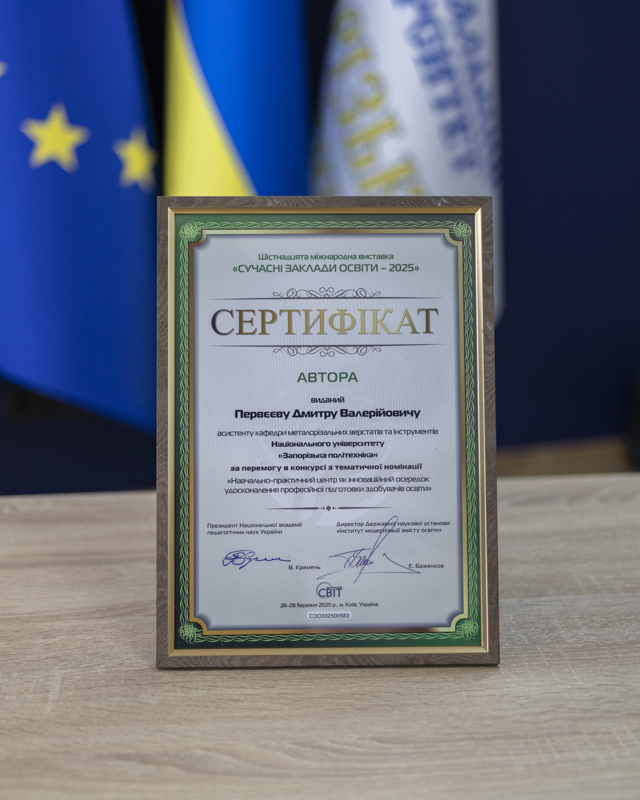 Vice-rector Ruslan Kulikovsky and Assistant of the Department of Metal-Cutting Machine Tools and Tools Dmytro Perveev prepared a competition work in the nomination “No. 10 Educational and Practical Center as an Innovative Center for Improving Professional Training of Education Seekers”.