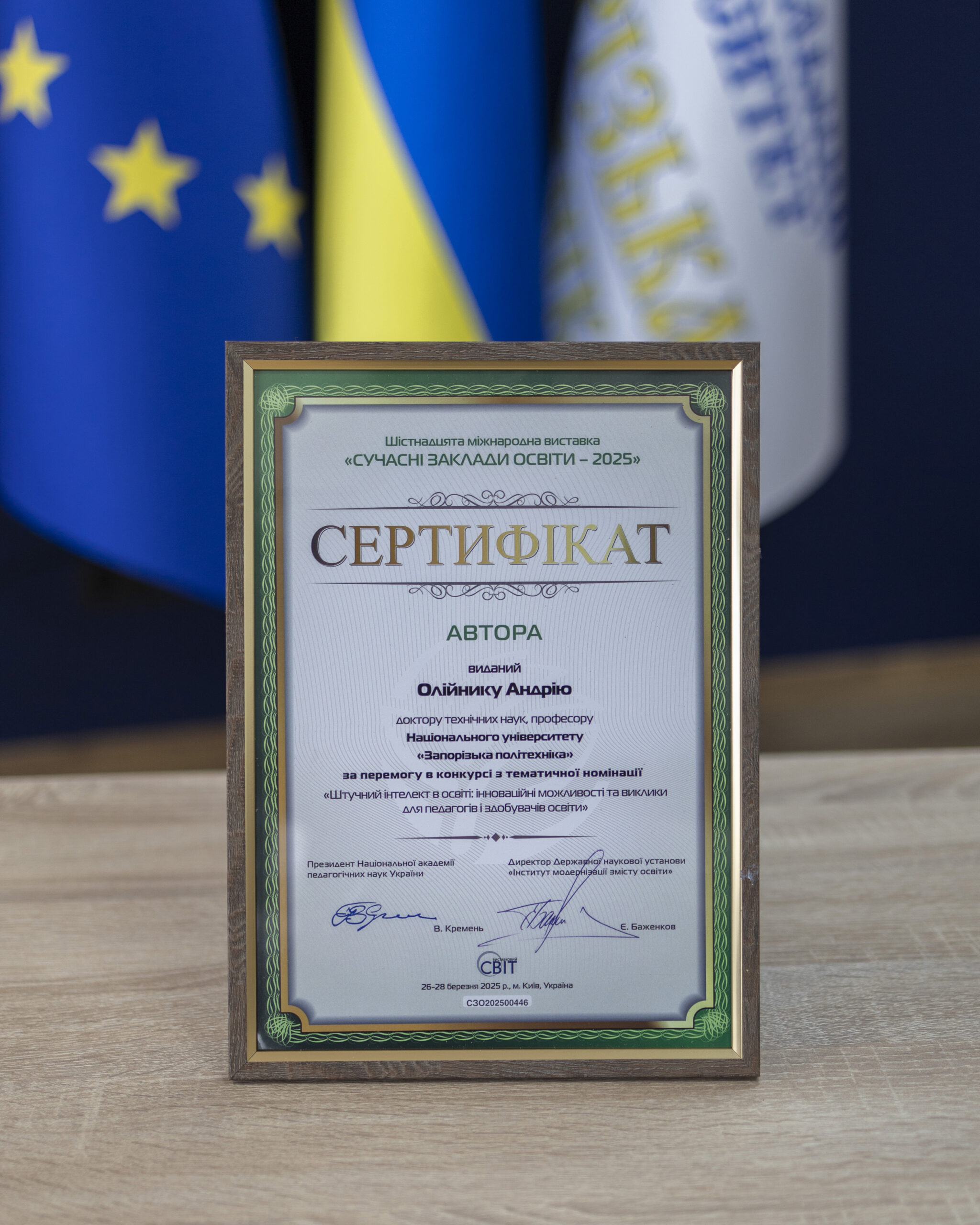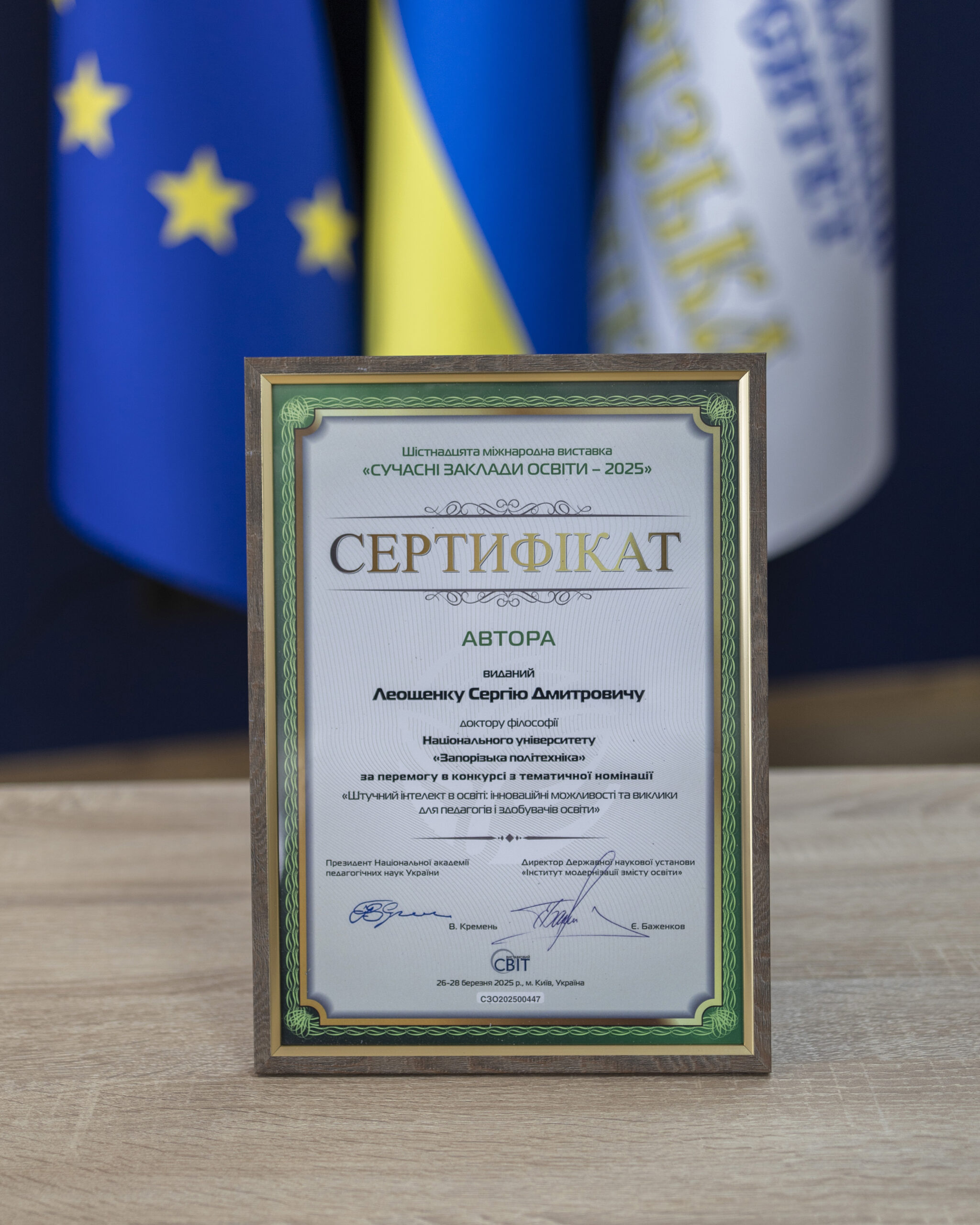 The research work in the thematic nomination: “II.8 Artificial intelligence in education: innovative opportunities and challenges for teachers and education seekers” on the topic “Use of generative artificial intelligence tools during the educational process” was prepared by the head of the department of software Serhiy Subbotin, professor of the department of software Andriy Oliynyk and associate professor of the department of software Serhiy Leoshchenko.
