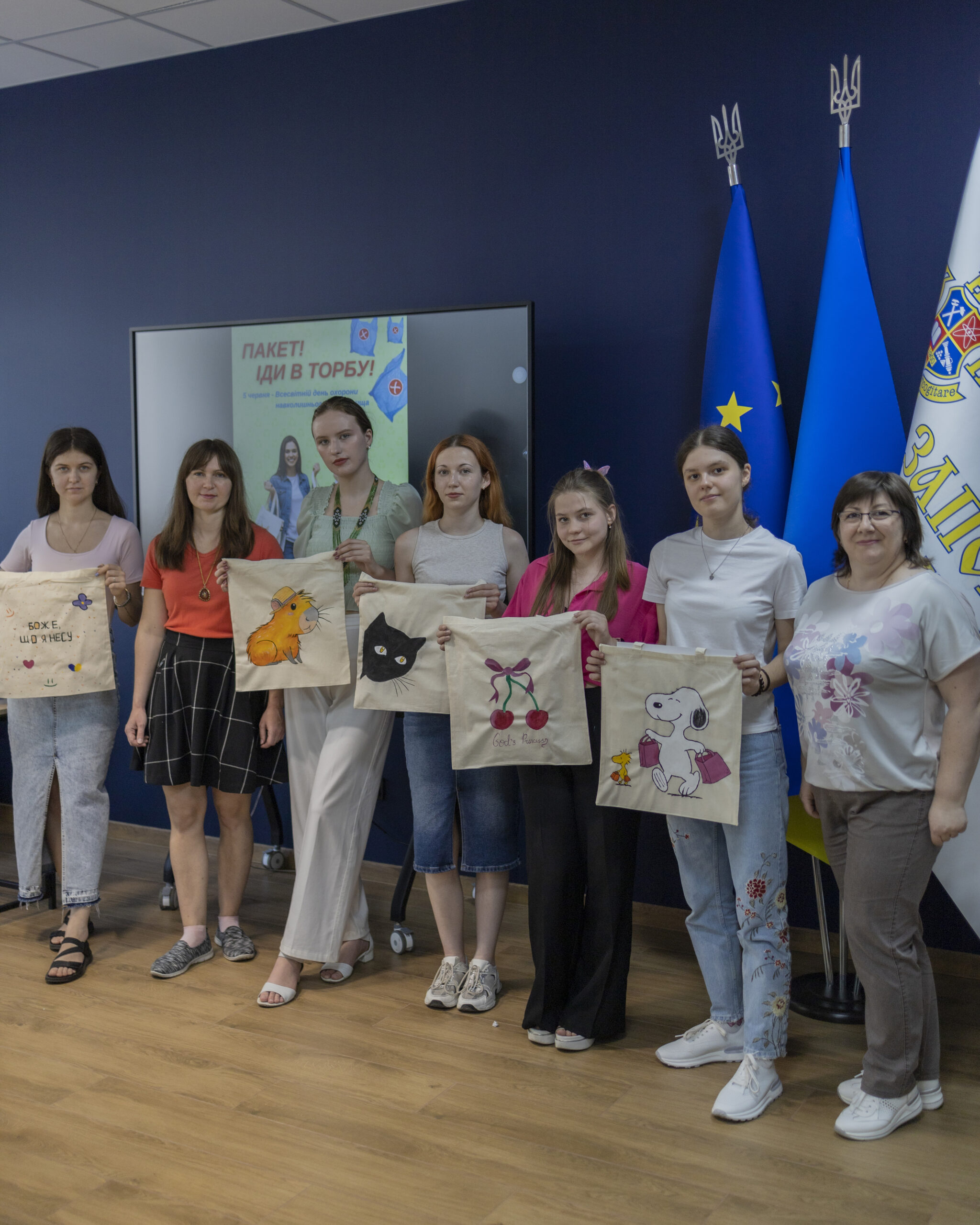 On June 5, a master class on painting shoppers “Package! Go to the bag!” was held at the Zaporizhzhia Polytechnic Institute, dedicated to World Environment Day. The holiday of creativity and environmental awareness for students was organized by the scientific library together with the trade union committee of students, postgraduates and student self-government.