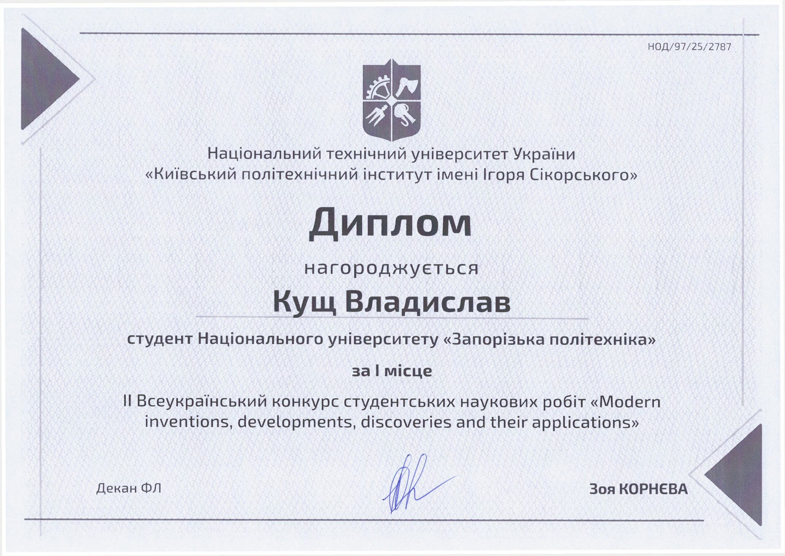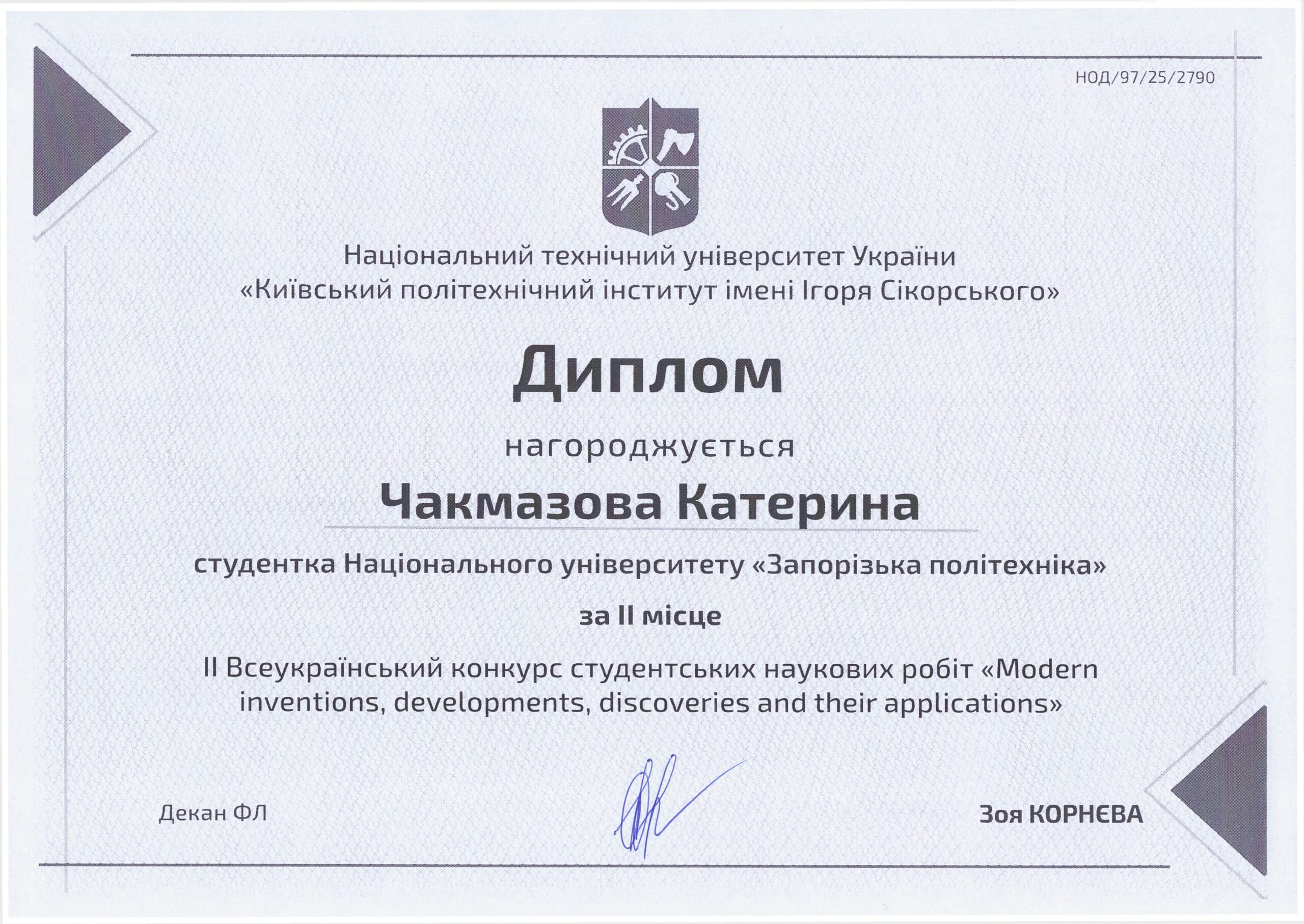 The All-Ukrainian competition of student scientific works “Modern inventions, developments, discoveries and their applications” in English and technical sciences was held in the spring. For the second time, the event is being held with the organizational support of the National University “Zaporizhzhya Polytechnic” to create an English-language platform for presenting student advanced achievements in the fields of biotechnology and bioengineering, biomedical and radio engineering. The competition had two stages – university and all-Ukrainian.