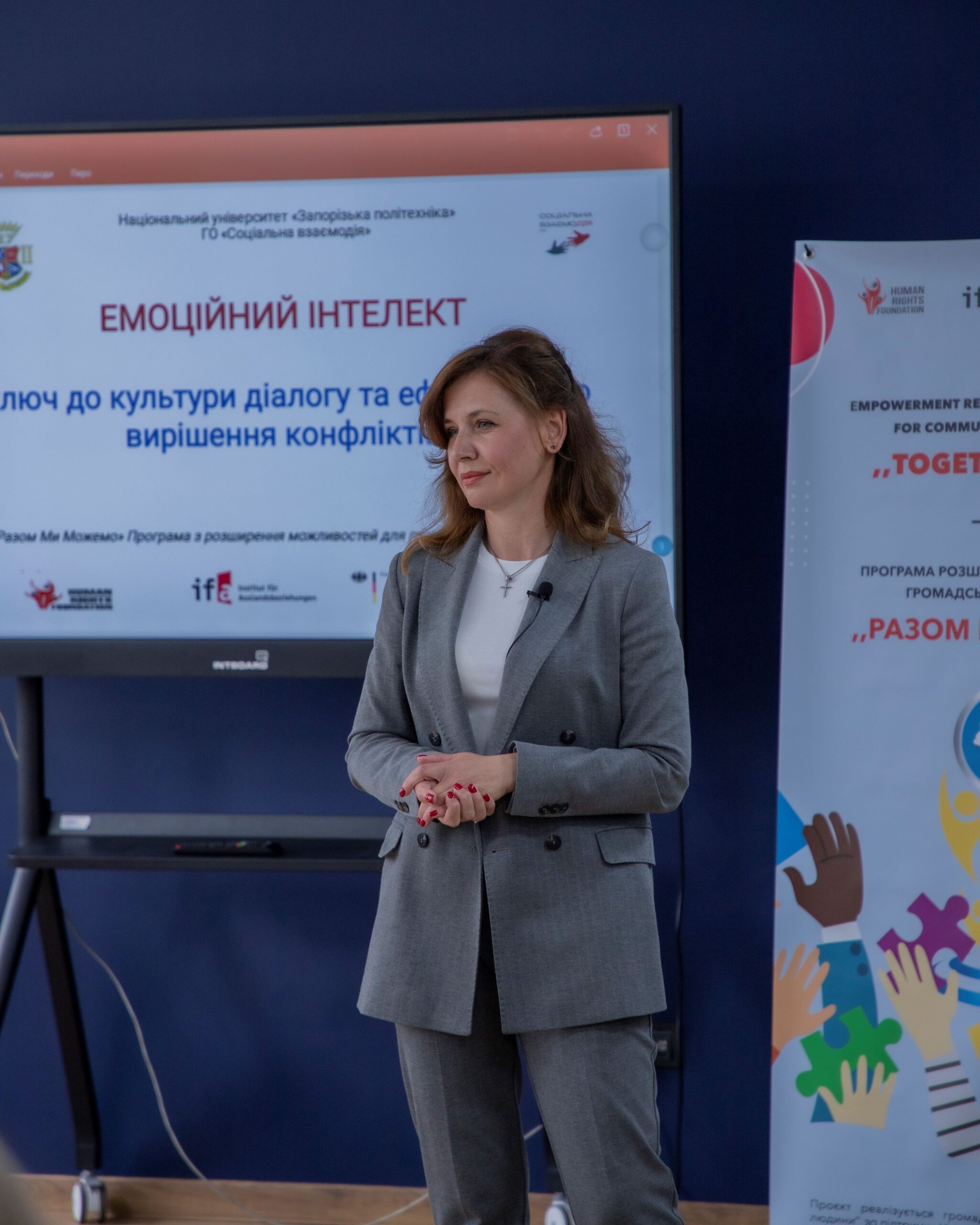 On May 27, the Zaporizhia Polytechnic National University hosted a training session called “Emotional Intelligence: The Key to a Culture of Dialogue and Effective Conflict Resolution.” The event was held within the framework of the project “Together We Can” of the Empowerment Program for Public Leaders in Ukraine, which is implemented by the NGO “Social Interaction”, NU “Zaporizhzhya Polytechnic” in cooperation with the NGO “Human Rights Foundation” (Kyiv) with the support of the Institute for Foreign Cultural Relations and the Ministry of Foreign Affairs of the Federal Republic of Germany.