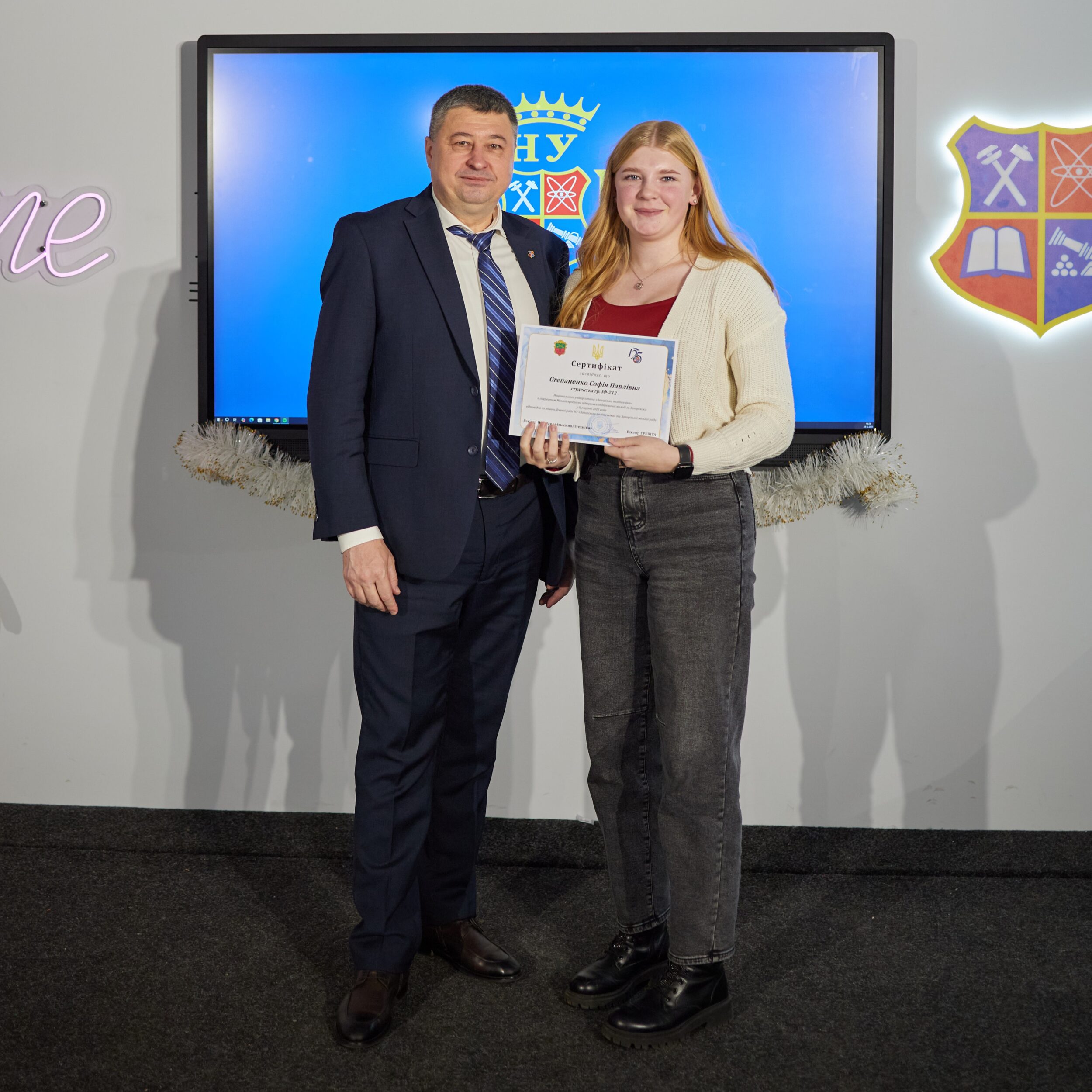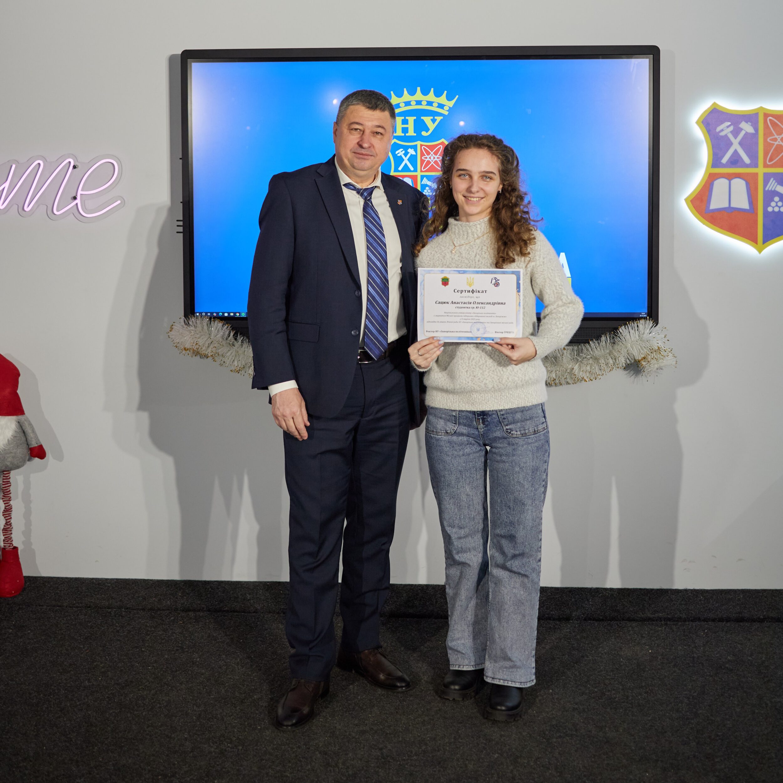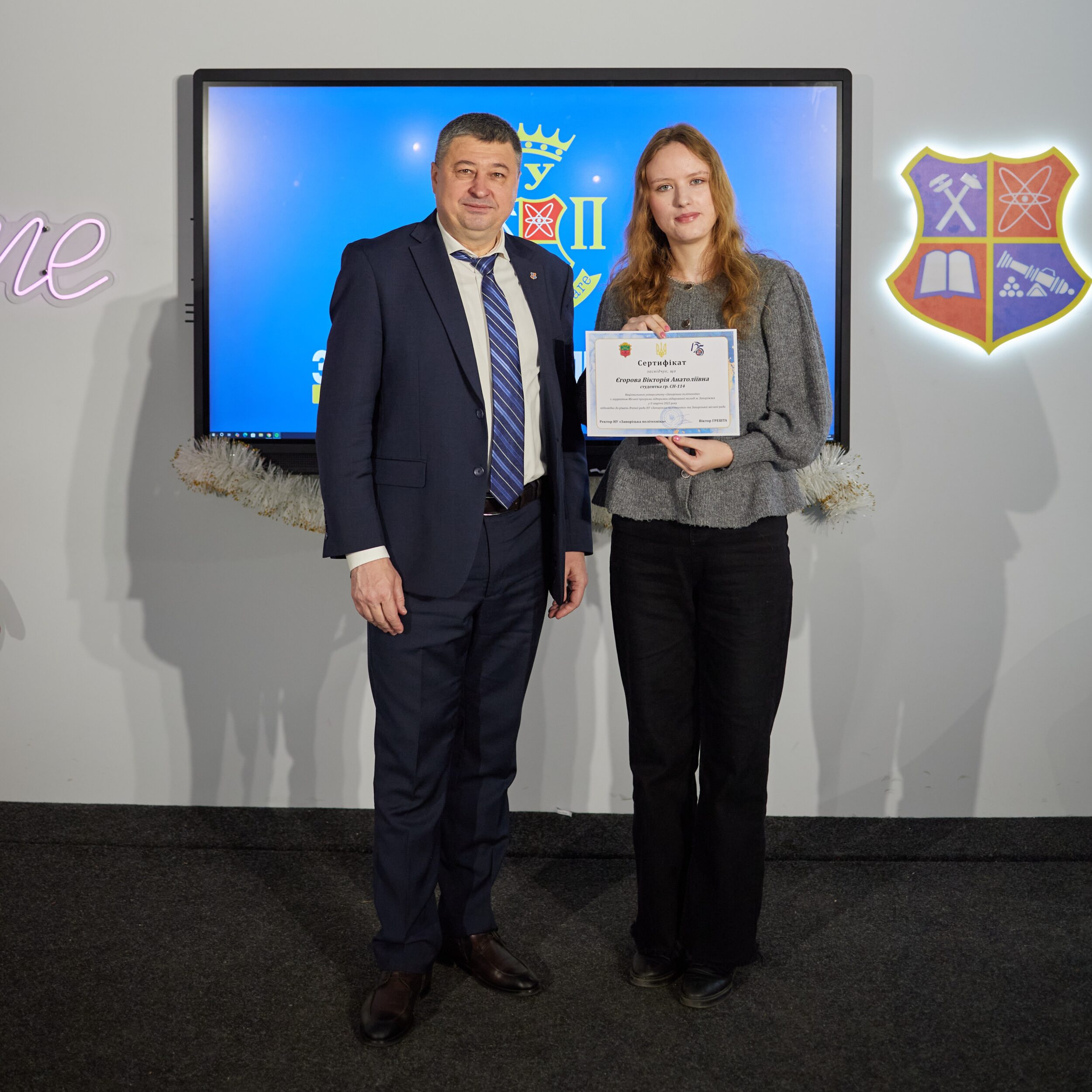 The event was solemnly opened by the rector of Zaporizhia Polytechnic National University, Viktor Greshta. He congratulated the laureates, thanked them for their active civic position and emphasized that it is precisely such proactive and purposeful youth that are the driving force behind the development of the university and the city.