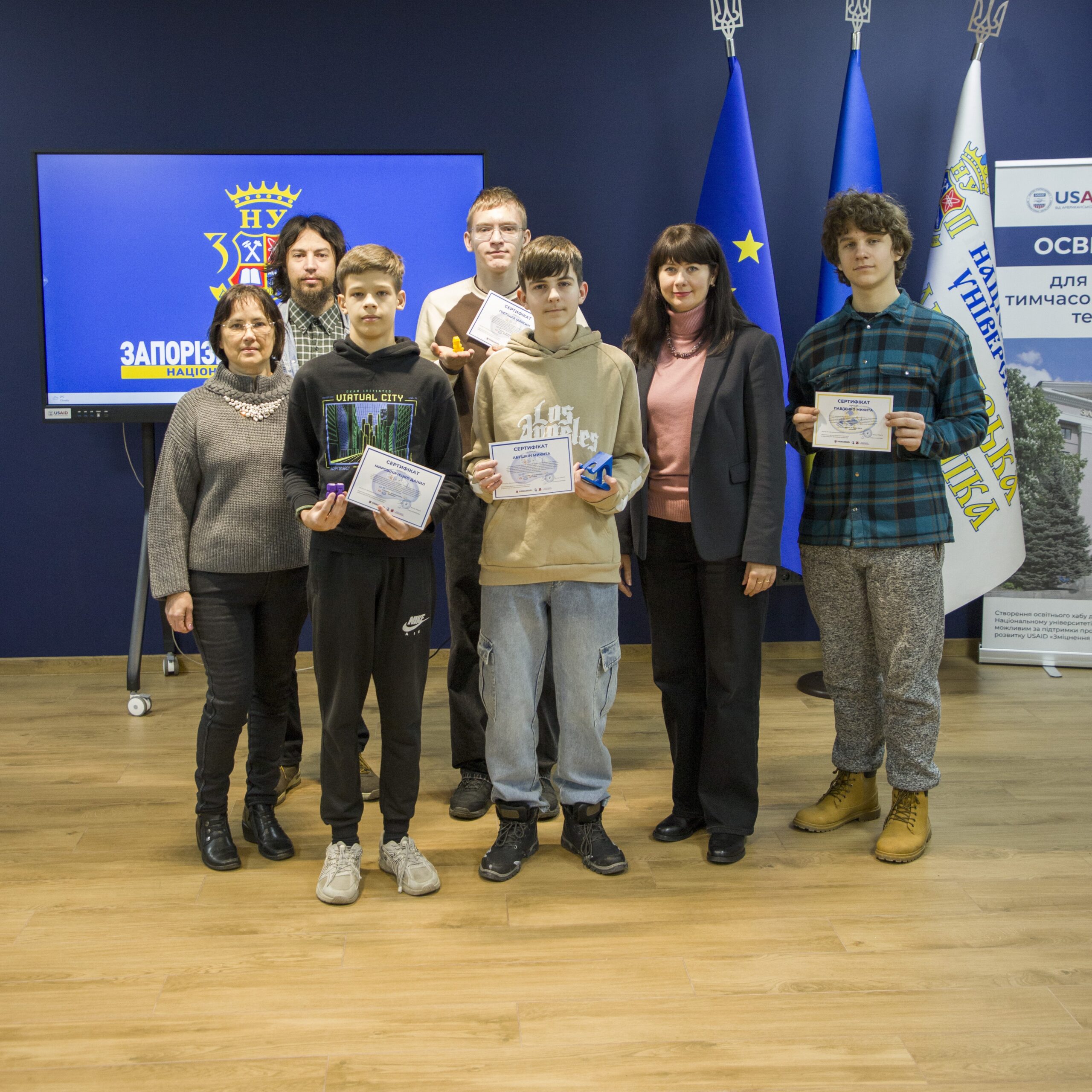 The leaders of the groups and the director of the Children’s and Youth Scientific University, Olena Nazarova, congratulated the students on the successful completion of their studies in the groups and presented them with personalized certificates.
