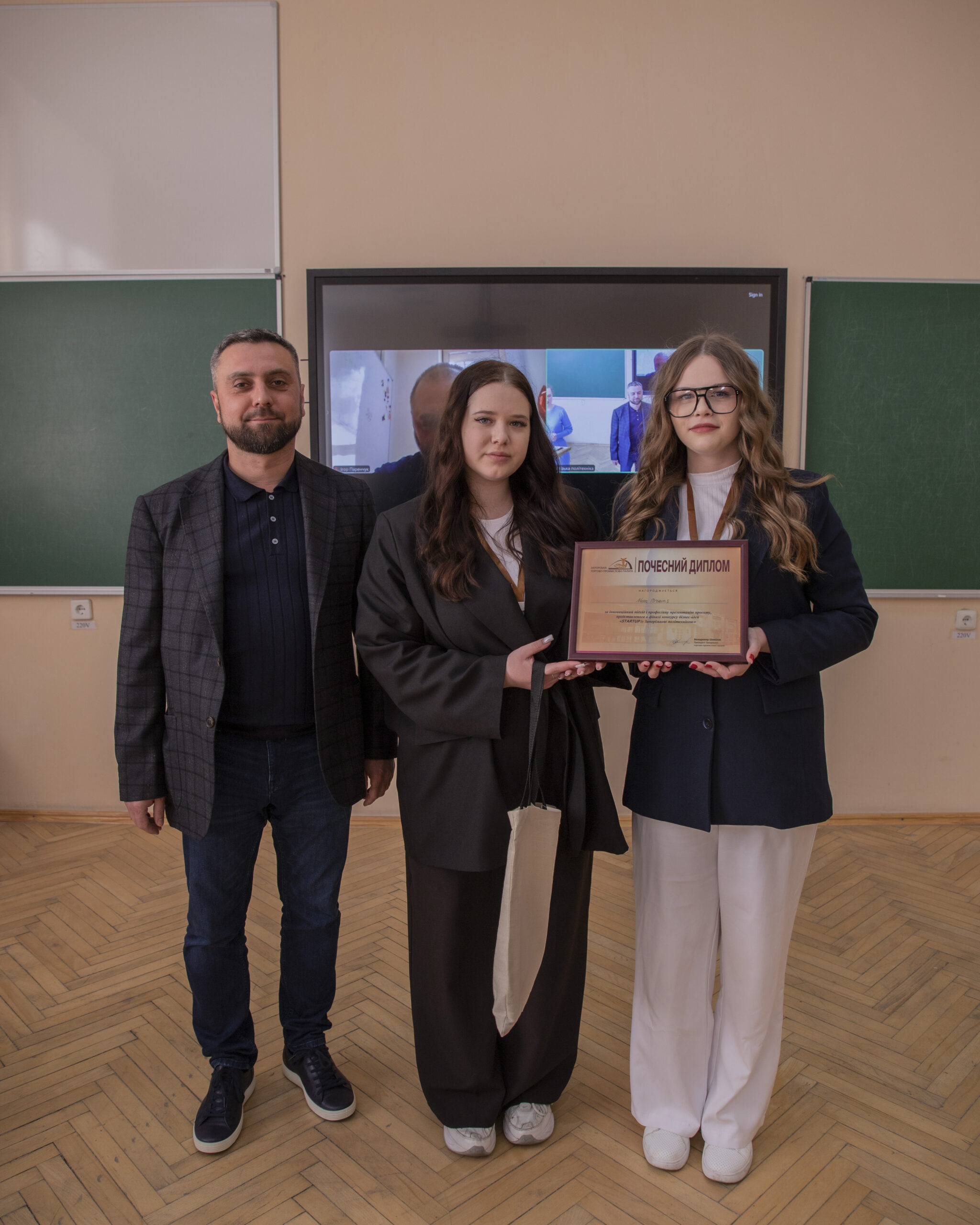— Vice President of the Zaporizhzhia Chamber of Commerce and Industry Andriy Kuts recognized the winner in the special nomination of the ZCCI — the Neon Brains team consisting of Diana Dementieva, Anastasia Morya and Iryna Nechaeva.