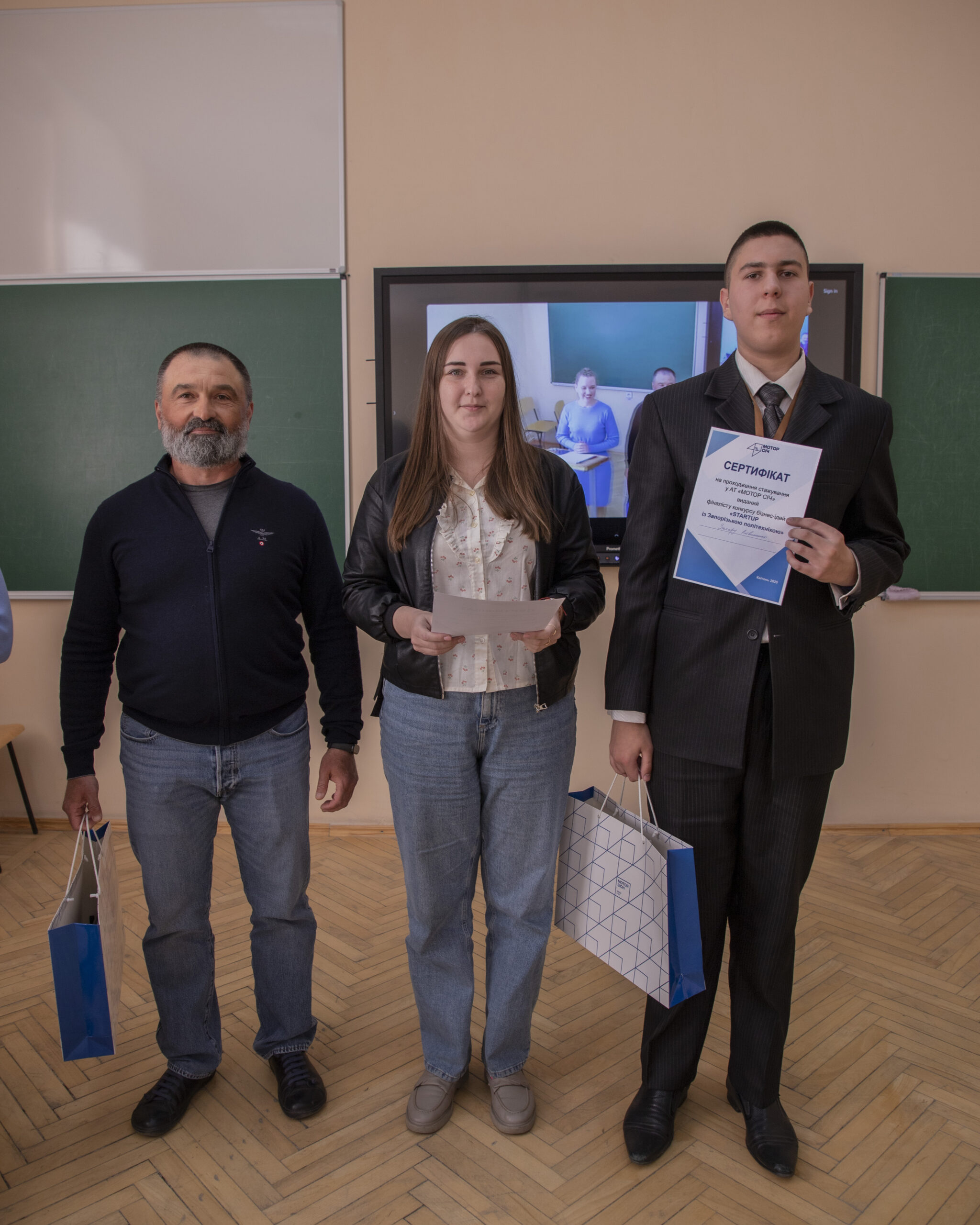 — Head of the Personnel Motivation Department of JSC Motor Sich Dmitry Gradinarov and Head of the Personnel Training and Development Department of JSC Motor Sich Alena Gavrylenko named the winners in the special nomination from JSC “Motor Sich”. These are the teams “CNC_Tech”, “AirSunBoost” and “Young Officer” consisting of Mykhailo Ilchenko, Valeria Siroa and Rodion Sevastyanov.