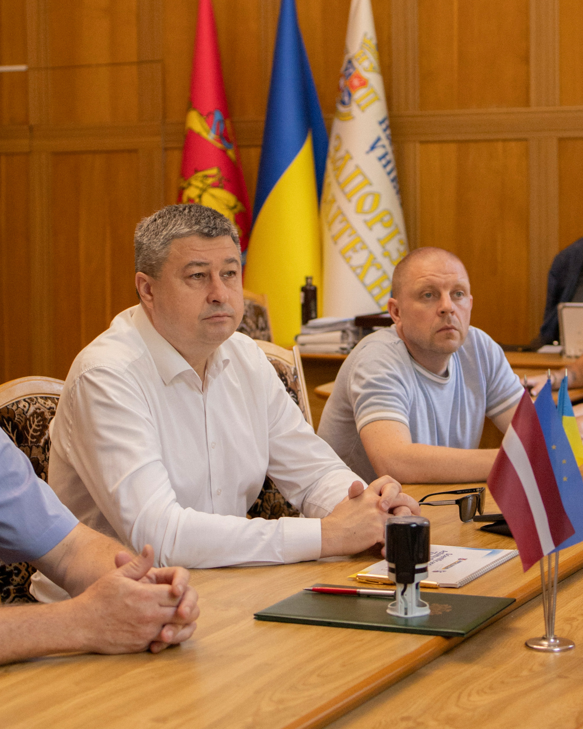 On July 28, an official meeting with colleagues from Riga Technical University (Latvia) was held at the Zaporizhia Polytechnic National University. The delegation included: Pauls Irbins, Head of the Aerospace Technology Center at Riga Technical University, and Alexander Narbut, Scientific Consultant at the Institute of Atomic Physics of the University of Latvia.