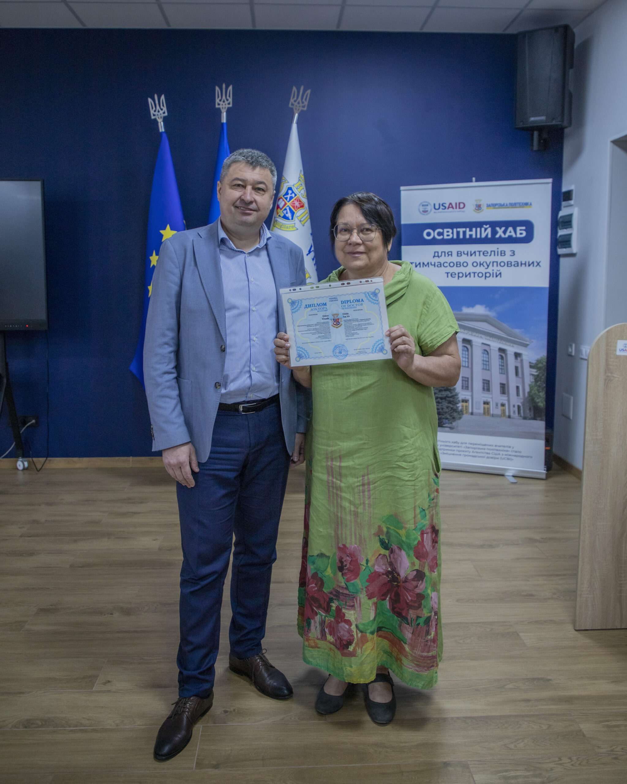 — Graduate students Olesya Yuskiv and Serhiy Danilov received their Doctor of Philosophy diplomas