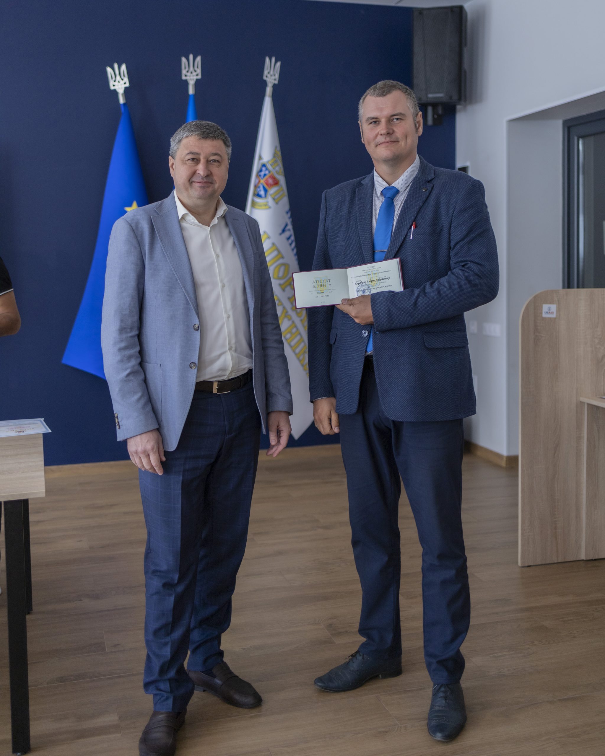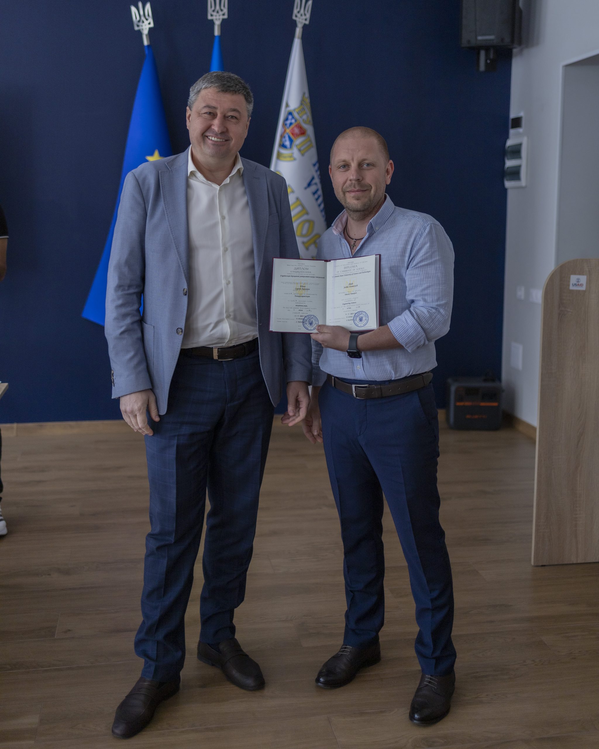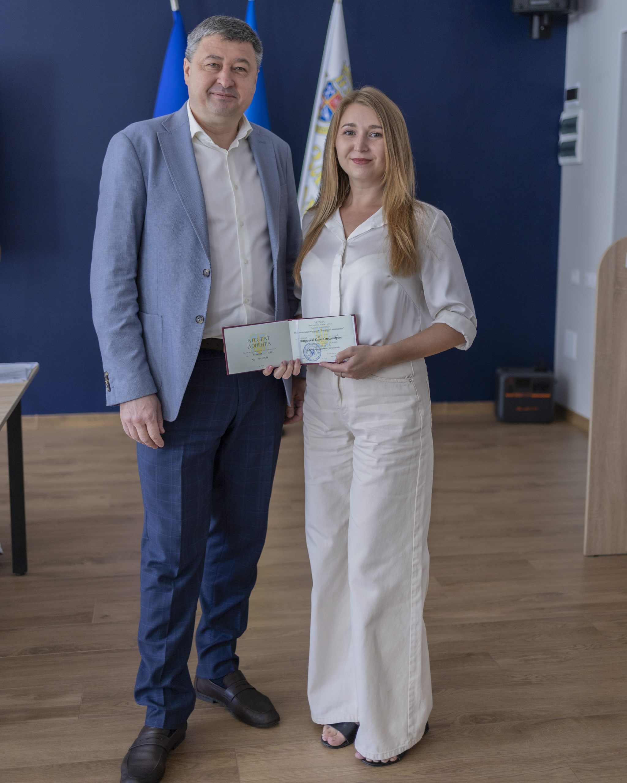During the Academic Council, the diplomas of Doctor of Philosophy were solemnly awarded to Serhiy Chygileychyk and Alena Sadykina. Also, the first vice-rector Serhiy Shylo received a diploma of candidate of sciences.