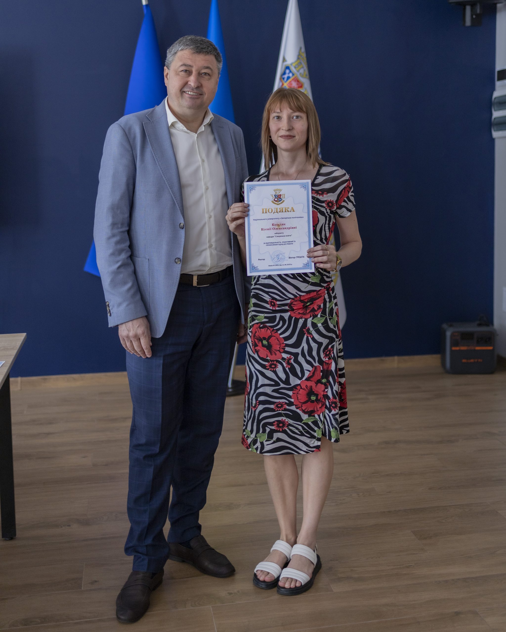 Gratitude for responsibility, initiative and professional approach to work was presented to the laboratory assistant of the Department of Special Education Ksenia Koshlyak, the senior laboratory assistant of the Department of Foreign Philology and Translation Anna Vazhnycha, the senior laboratory assistant of the Department of Systems Analysis and Computational Mathematics Yulia Potapova.
