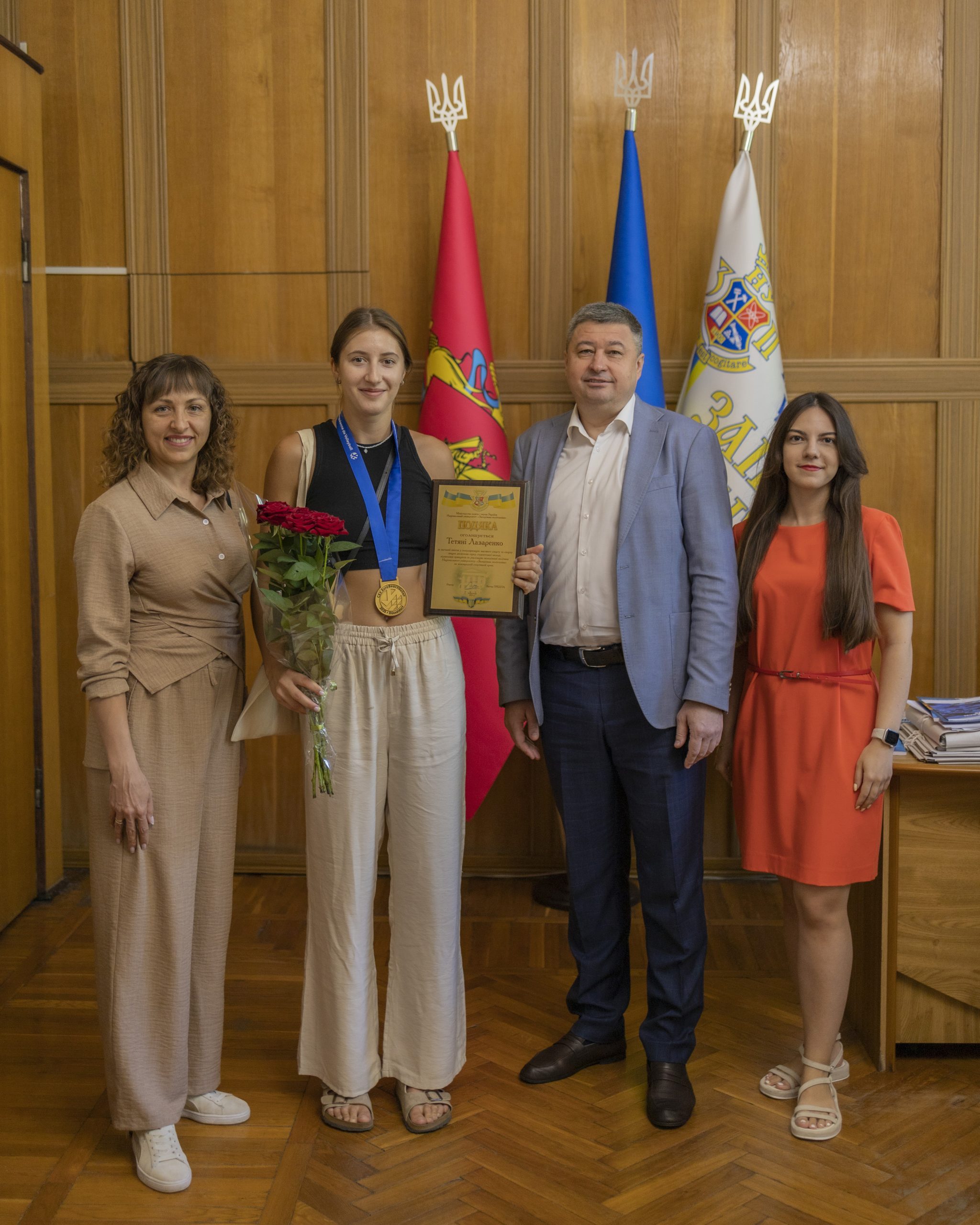 During the meeting, the rector personally congratulated the student on her high achievements, noted the importance of representing Ukraine at the international level by our athletes, and presented her with a certificate of gratitude for her significant contribution to the popularization of mass sports and sports of higher achievements among student youth, the promotion of the principles and implementation of the youth policy of the Zaporizhzhia Polytechnic University in the international sports arena.