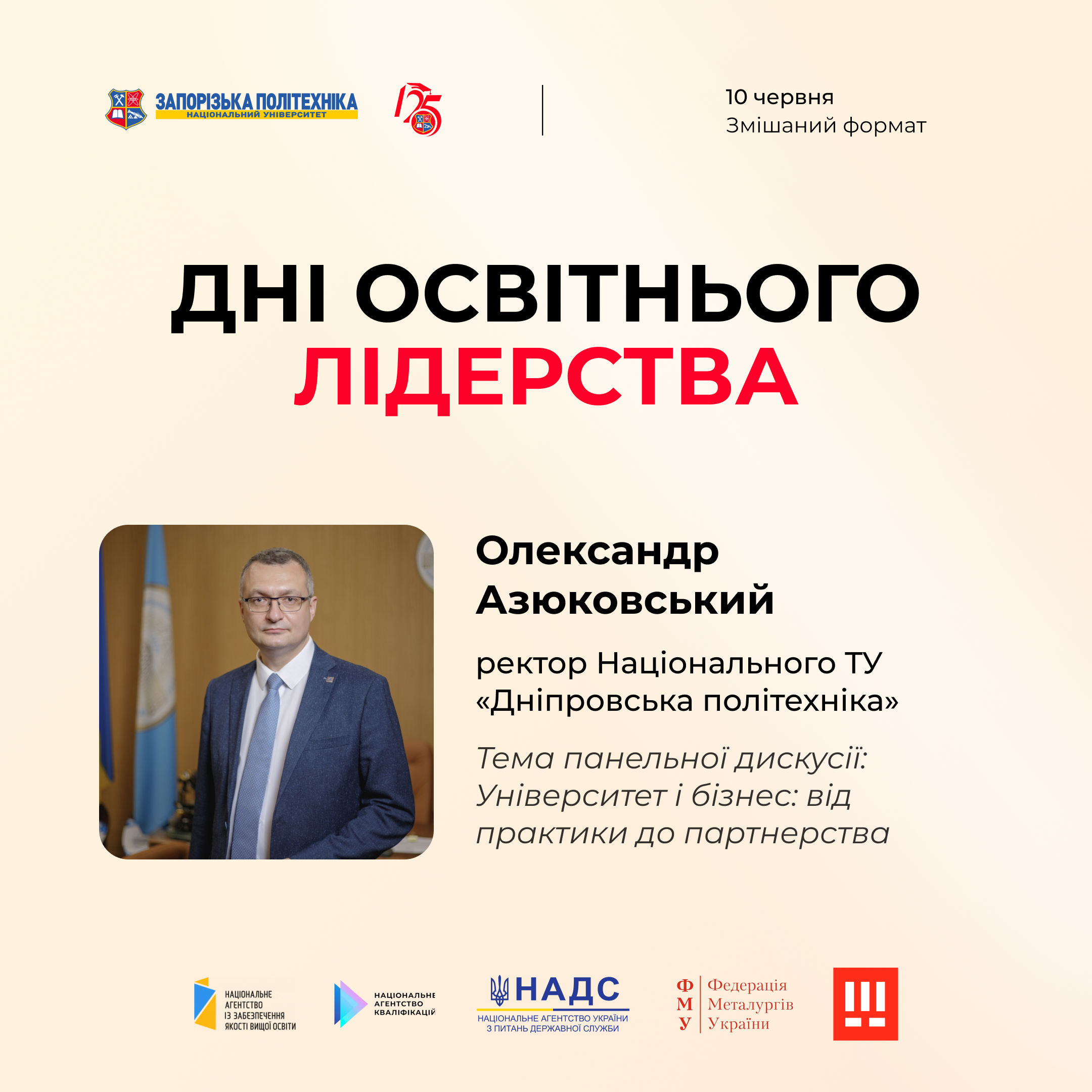 Національний університет «Запорізька політехніка» запрошує на Всеукраїнський форум «Дні освітнього лідерства»