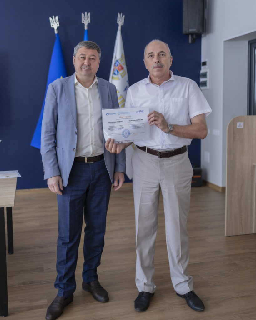 Професор Олександр МІТЯЄВ отримав сертифікат за відмінну роботу в якості наукового керівника учасників та переможців Міжнародного студентського професійного творчого конкурсу “Матеріалознавство”. А також доценти Володимир ПЛЕСКАЧ та Іван АКІМОВ отримали сертифікати з підготовки учасників Міжнародного студентського професійного творчого конкурсу “Матеріалознавство”.