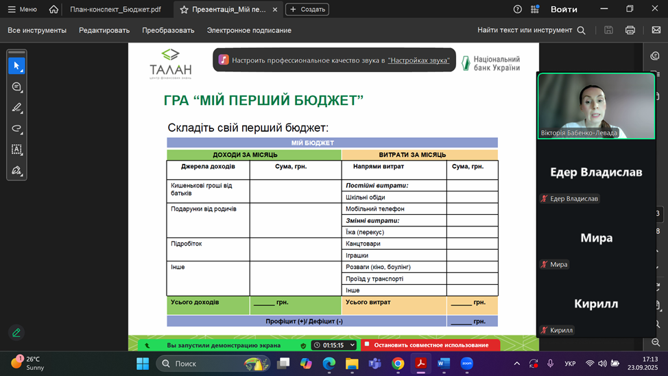 Гурток “Фінансова грамотність”
