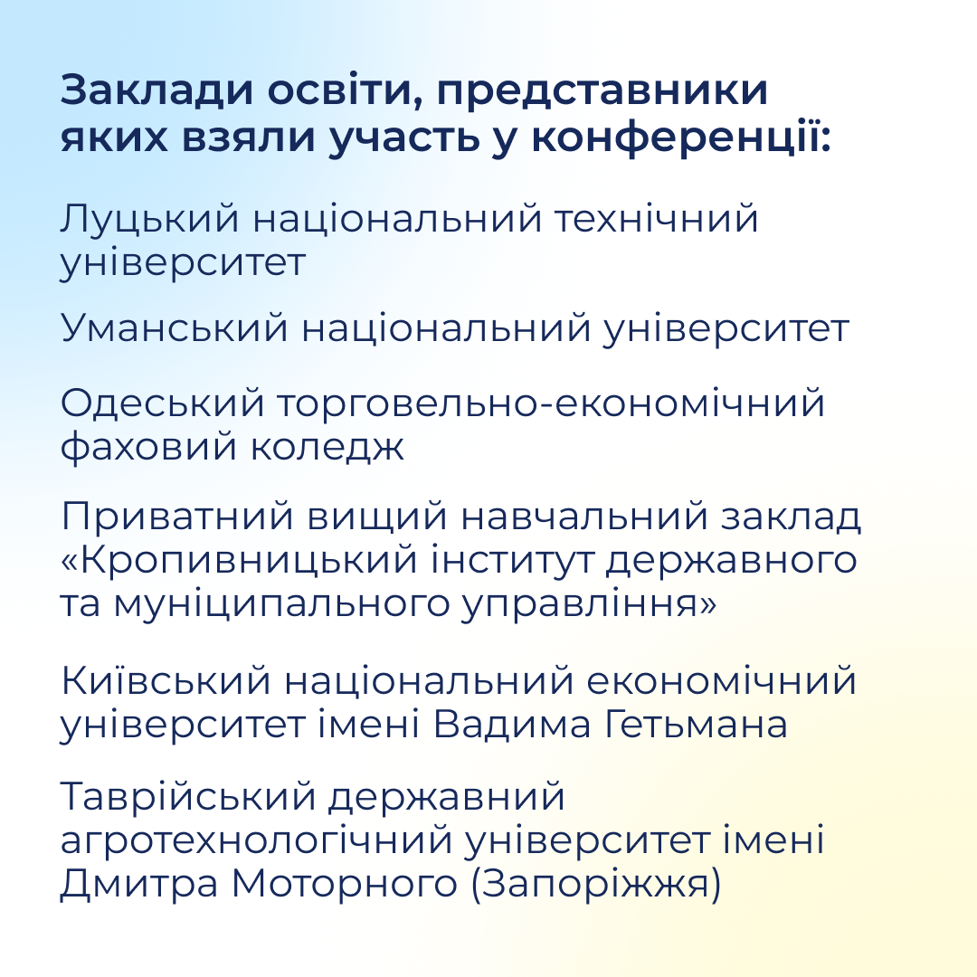 More than 300 participants took part in the conference, including 175 higher education students, postgraduates, doctoral students, young scientists, more than 120 representatives of higher education institutions, professionals in the field of tourism, hotel and restaurant business, and recreation. Thanks to the wide representation of participants from all regions of Ukraine, a diversity of scientific approaches, a deep exchange of experience and a constructive dialogue between representatives of different scientific schools were ensured.