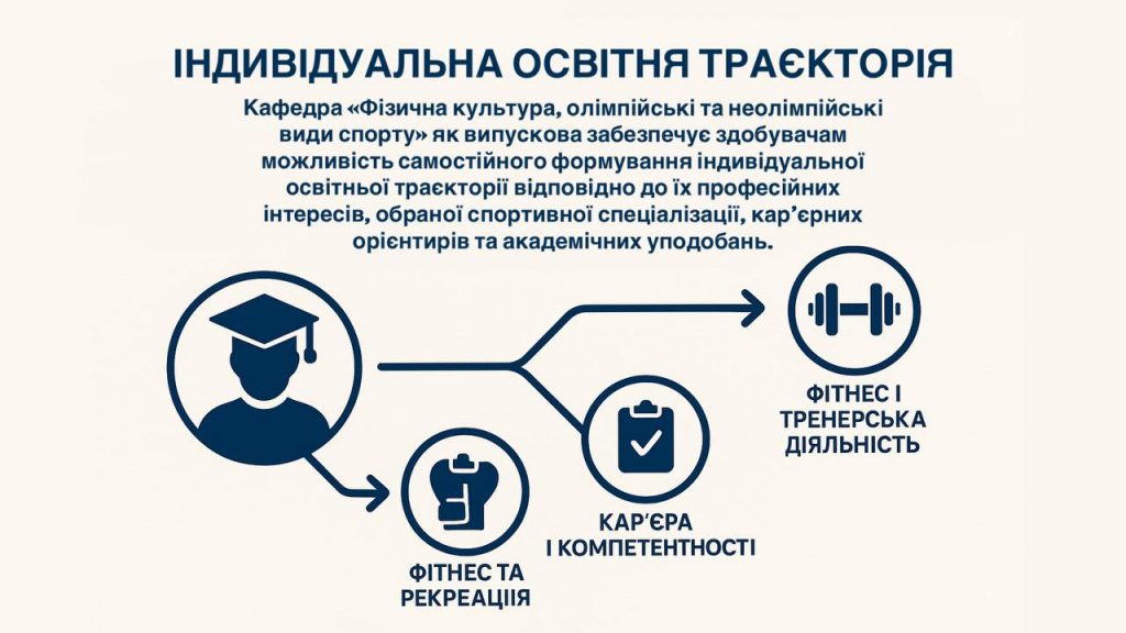 Навчання за індивідуальною траєкторією сприяє формуванню сучасних компетентностей у сфері фітнесу, рекреації та тренерської діяльності, підвищує конкурентоспроможність випускників на ринку праці, відкриває можливості для працевлаштування у фітнес-клубах, оздоровчих центрах, спортивних організаціях, а також для реалізації у приватній практиці чи підприємницькій діяльності у сфері здоров’я та спорту.