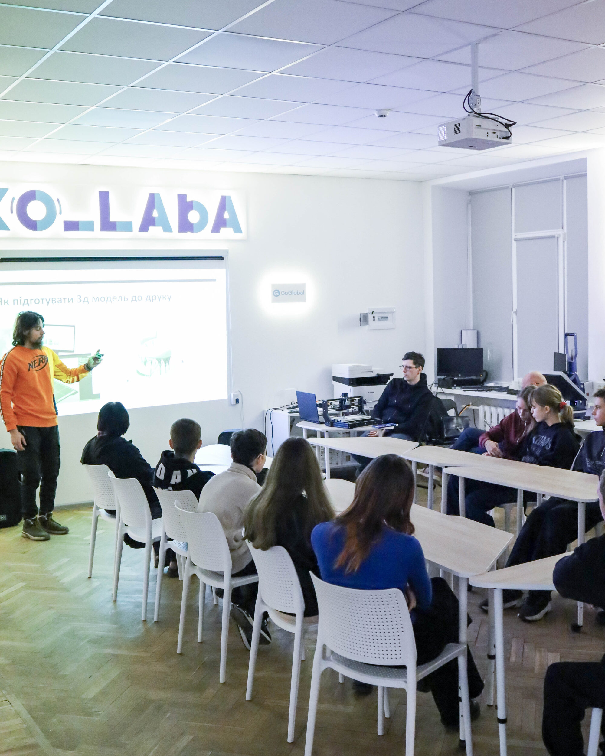 Школярі познайомилися з лабораторією «КоLаba», її обладнанням та можливостями використання простору для навчання, творчості й реалізації учнівських проєктів.