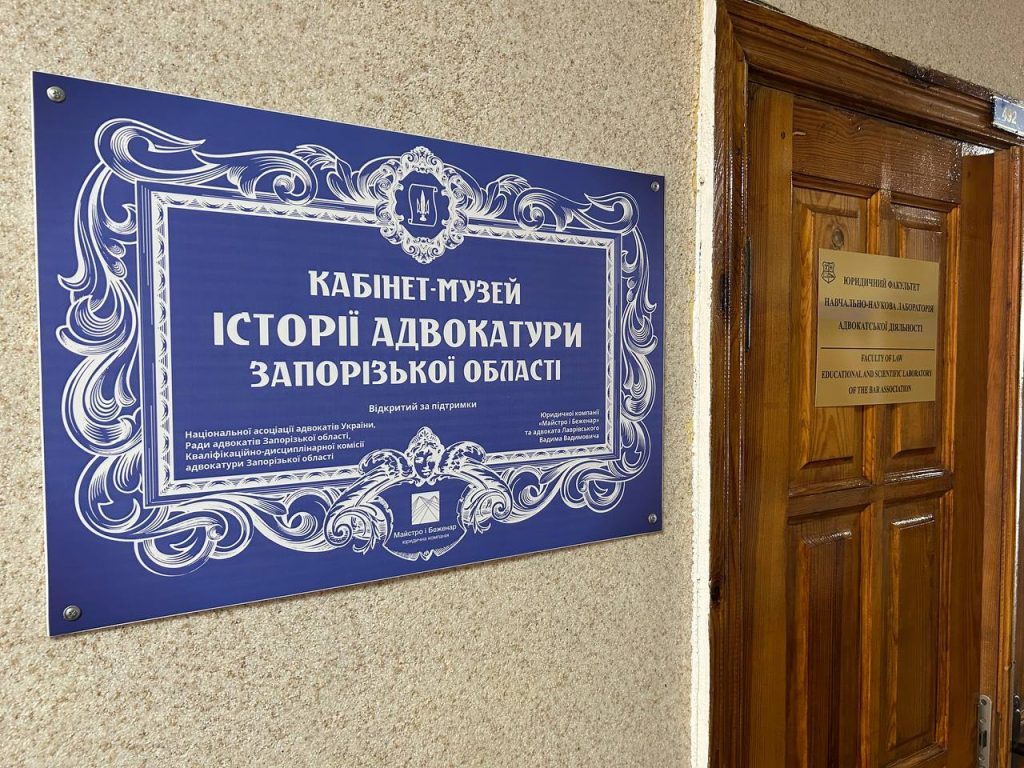 Перший у Запорізькій області, музей історії адвокатури був створений у 2024 році за ідейної та фінансововї підтримки адвоката, партнера ЮК “Майстро і Беженар” Дмитра Майстра та адвоката в Республіці Чехія Вадима Лаврівського. Відкриттю сприяли декан юридичного факультету Юрій Філей, Національна асоціація адвокатів України, Кваліфікаційно-дисциплінарна комісія Запорізької області та Рада адвокатів Запорізької області.