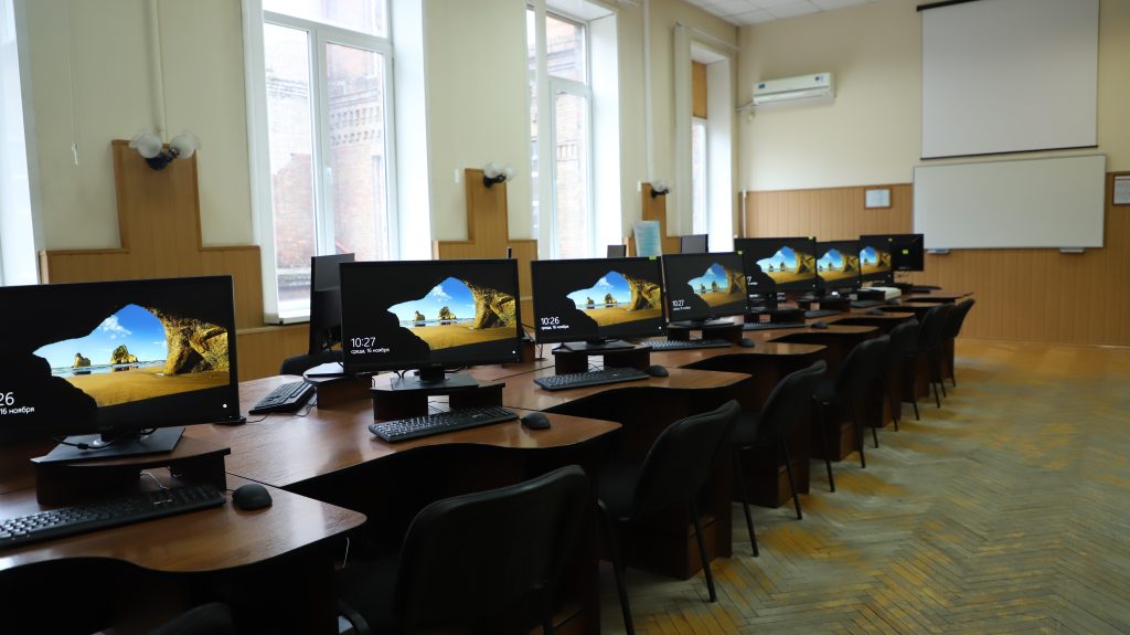 Комп’ютерний клас на 25 робочих місць комп’ютерів останнього покоління. Все програмне забезпечення що використовується у комп’ютерному класі ліцензійне (Компас, SolidWorks, програмні продукти Autodesk). Загальна вартість програмного забезпечення складає 1,5 млн $. Оснащена проекційною установкою.
