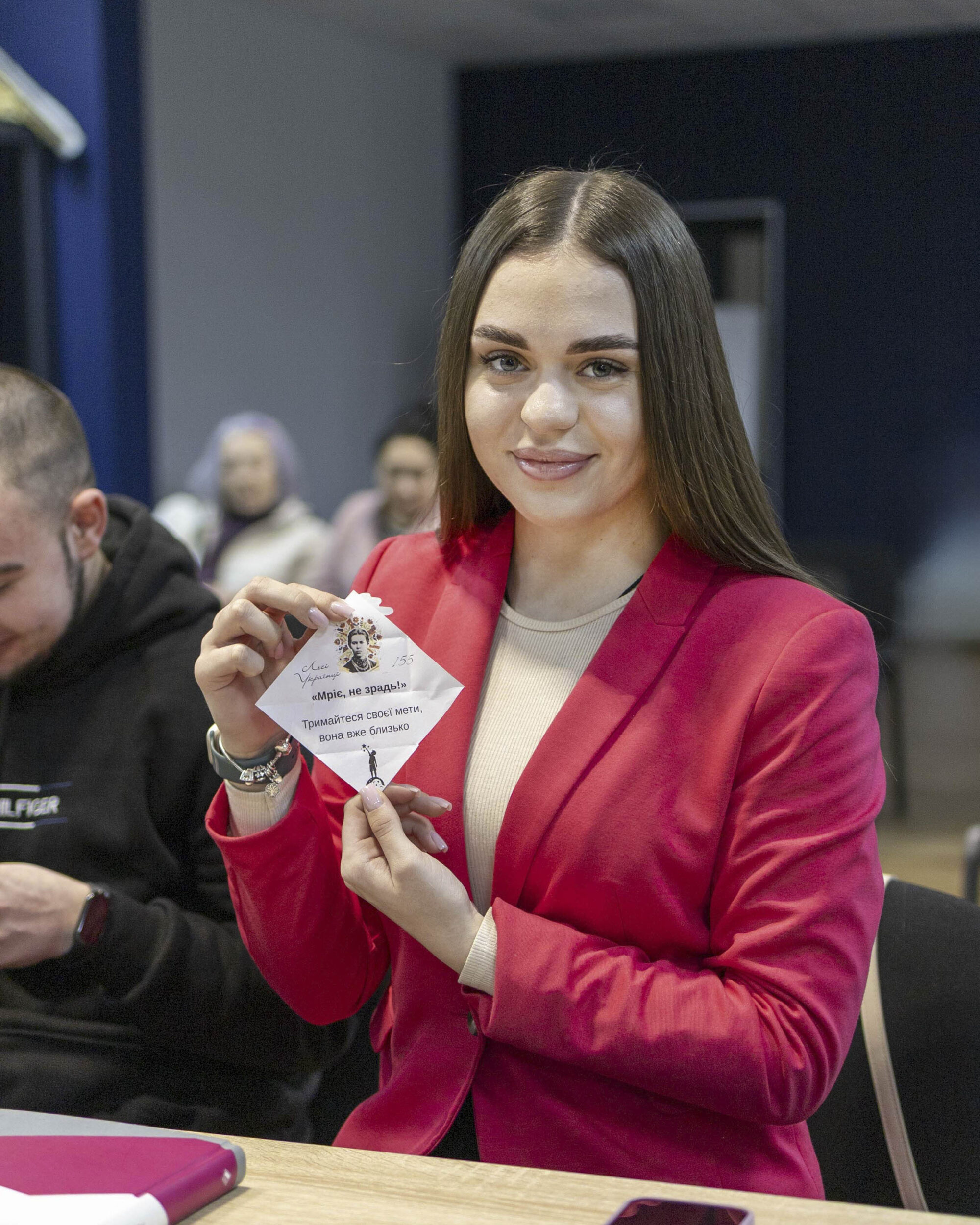 Учасники декламували вірші Лесі Українки, які сьогодні звучать пророче й абсолютно поза контекстом часу. Аби додати зустрічі трішки магії, бібліотека підготувала «Лесині передбачення» — кожен гість отримав цитату-ворожіння з творів поетеси.