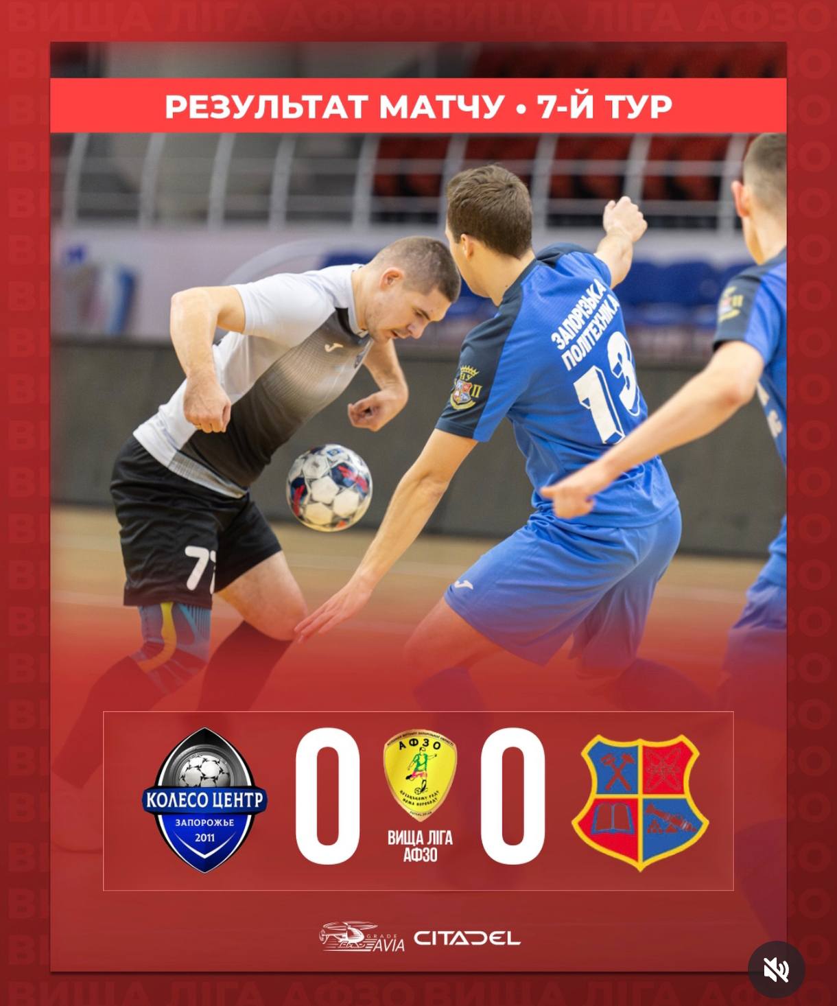 Збірна команда НУ «Запорізька політехніка» з футзалу провела напружений поєдинок проти команди «Колесо Центр Запоріжжя», який завершився з рахунком 0:0.