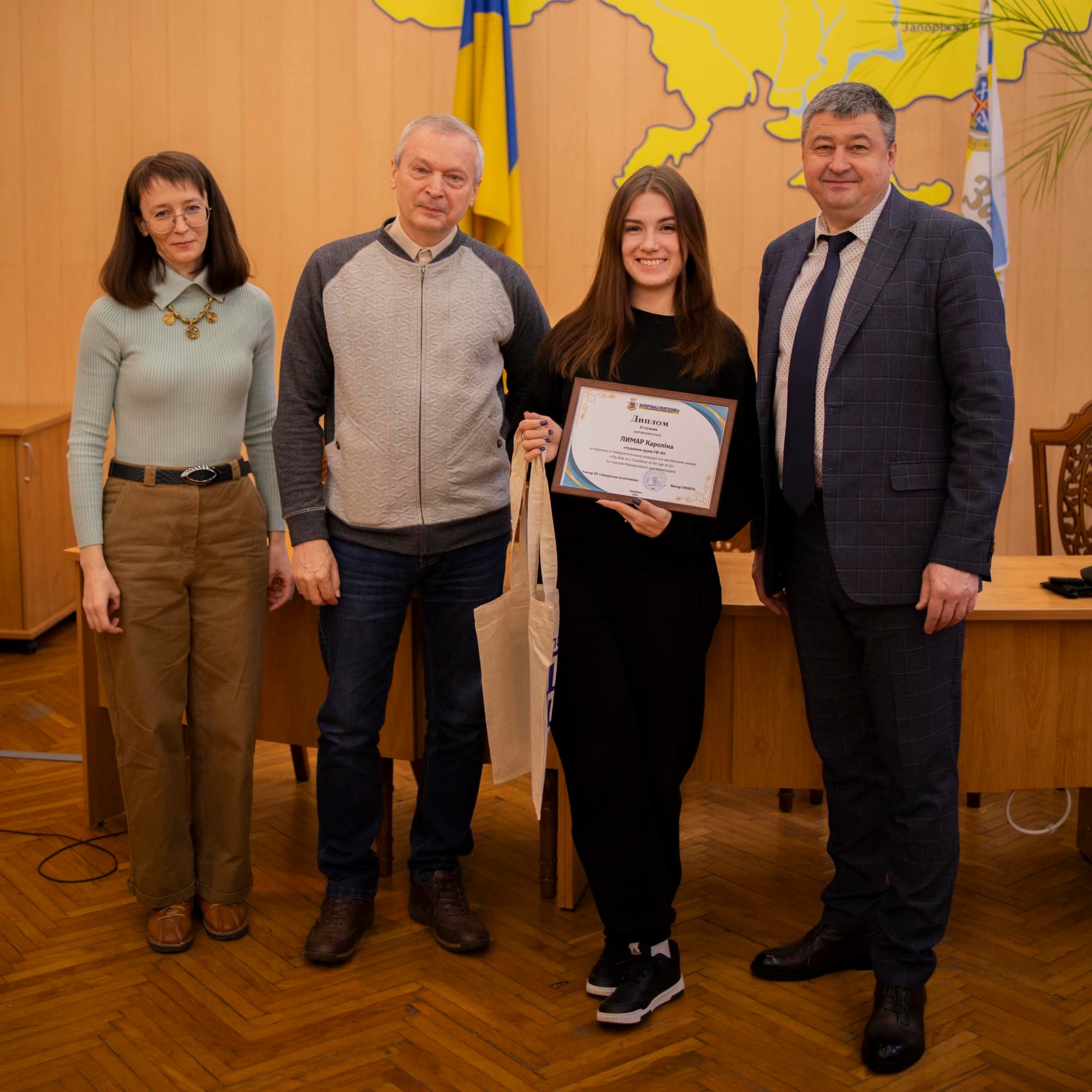 У межах урочистої церемонії були нагороджені й переможці XVII Міжнародного конкурсу науково-дослідних культурно-творчих робіт іноземними мовами «Які потенційні переваги та небезпеки штучного інтелекту?» (англійська мова):